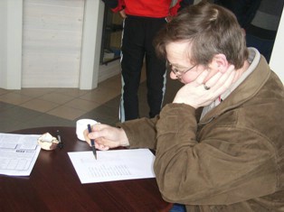 Áhugasamir tipparar voru mættir í Sögumiðstöðina á laugardagsmorguninn til að freista gæfunnar. Við tókum að gamni myndir af nokkrum þeirra og er fyrsta myndin af áskorendum vikunnar þeim Guðna Hallgríms og Guðmundi Jóns