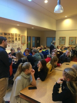 Í dag eru liðin 55 ár frá því Grunnskóli Grundarfjarðar var vígður og hófst kennsla í elsta hluta skólans í kjölfarið. Kennarar og nemendur gerðu sér dagamun í tilefni af afmælinu; sungu afmælissönginn og gæddu sér á köku.