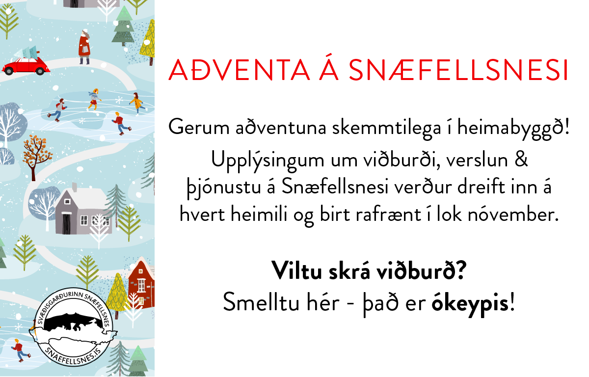 Það styttist í aðventuna og nú reynir á okkur sem samfélag á Snæfellsnesi að standa saman og gera þennan tíma skemmtilegan og fylla hann góðri stemningu eins og við verður komið að uppfylltum þeim reglum sem gilda á hverjum tíma. Aðventan verður öðruvísi það eitt er víst, en tækifærin til að gera hana að okkar og gera hana skemmtilega eru fjölmörg. Hvetjum við íbúa til að koma með hugmyndir að viðburðum í heimabyggð til að gera tilveruna skemmtilega.