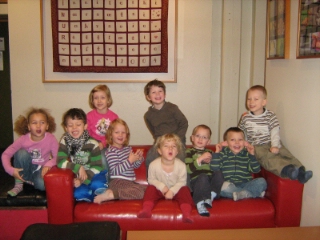 Krakkar úr árgangi 2005 á leikskólanum komu í heimsókn í Grunnskólann í dag. Þau voru að heimsækja nokkra foreldra sem vinna þar.