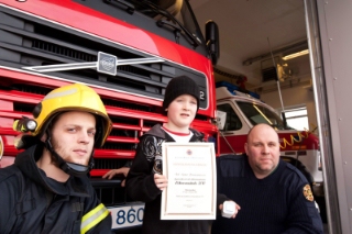 og sjúkraflutningamanna (LSS). Af því tilefni voru allir þriðju bekkingar landsins heimsóttir og fræddir um eldvarnir. Allir krakkarnir tóku þátt í eldvarnargetraun sem síðan var dregið úr nú á dögunum og þeir heppnu verðlaunaðir á 112 deginum sem fór fram á laugardaginn. Í Grundarfirði var það hann Atli Ágúst Hermannsson sem var einn af þessum heppnu þriðju bekkingum og hlaut hann í verðlaun reykskynjara, viðurkenningaskjal og iPod tónlistarspilara. Á myndinni til hliðar má sjá Atla Ágúst með verðlaunin góðu ásamt þeim Gústav Alex Gústavsson reykkafara og Valgeiri Magnússyni slökkviliðsstjóra.