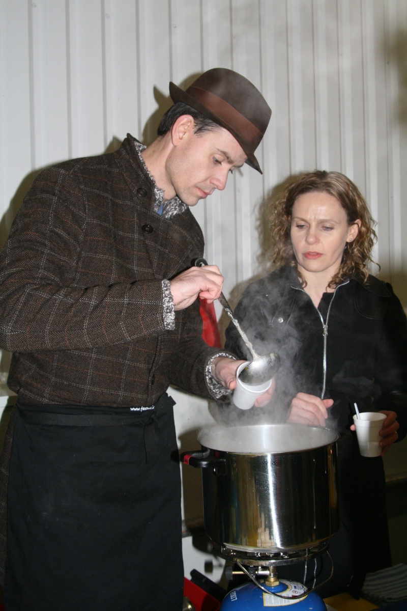 Hér má sjá Séra Aðalstein og Línu Hrönn í súpukeppninni á síðasta ári.