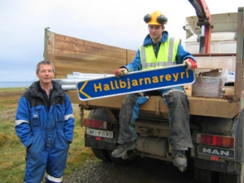 Bæjarstjórn Grundarfjarðar samþykkti í júní sl. að láta setja upp ný skilti við alla bæi í dreifbýli Grundarfjarðar. Verkefnið var unnið í samvinnu við Vegagerðina, en skiltin þurfa að uppfylla ákveðin skilyrði, um endurkast o.fl., sem Vegagerðin setur um skilti við þjóðvegi. Skiltin eru nú tilbúin og hófu starfsmenn Vegagerðarinnar með dyggri aðstoð starfsmanns áhaldahúss uppsetningu á þeim í framsveit í gær.