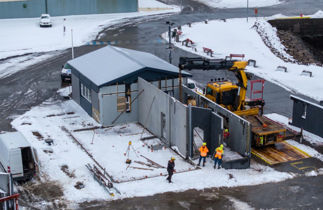 Dagana 3. og 4. mars sl. reistu verktakar á vegum fyrirtækisins BM Vallá húseiningar í nýja viðbyggingu við hafnarhúsið, Nesvegi 2. Í febrúar hafði sökkuleiningum verið komið á sinn stað í grunni hússins. Ætlunin er að taka húsið í notkun í byrjun sumars.