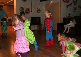 Dansgólfið var skrautlegt í félagsmiðstöðinni Eden sl. laugardag þegar íþróttaskólinn stóð fyrir balli fyrir yngstu börnin. Börnin skemmtu sér konunglega og eins og sést á myndinni var það hin frjálsa aðferð í dansinum sem réði ríkjum.