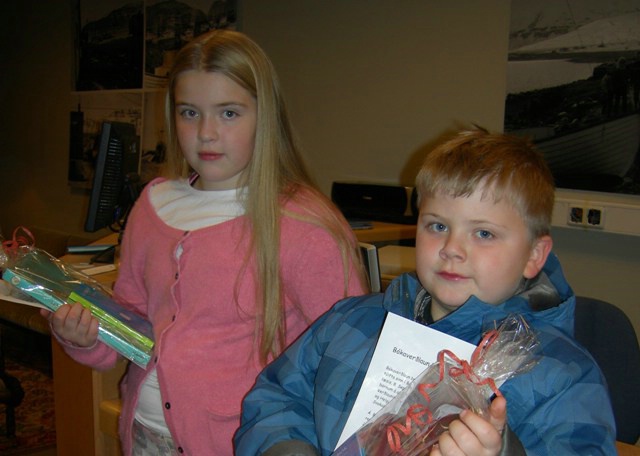 Ragnheiður Arnardóttir og Alexander Freyr Ágústsson fengu glaðning fyrir þátttöku í kosningu um bestu barnabók ársins 2012. Aukaspyrna á Akureyri eftir Gunnar Helgason og Dagbók Kidda Klaufa: Svakalegur sumarhiti eftir Jeff Kinney í þýðingu Helga Jónssonar fengu flest atkvæði í kosningu 6-12 ára krakka á Íslandi.