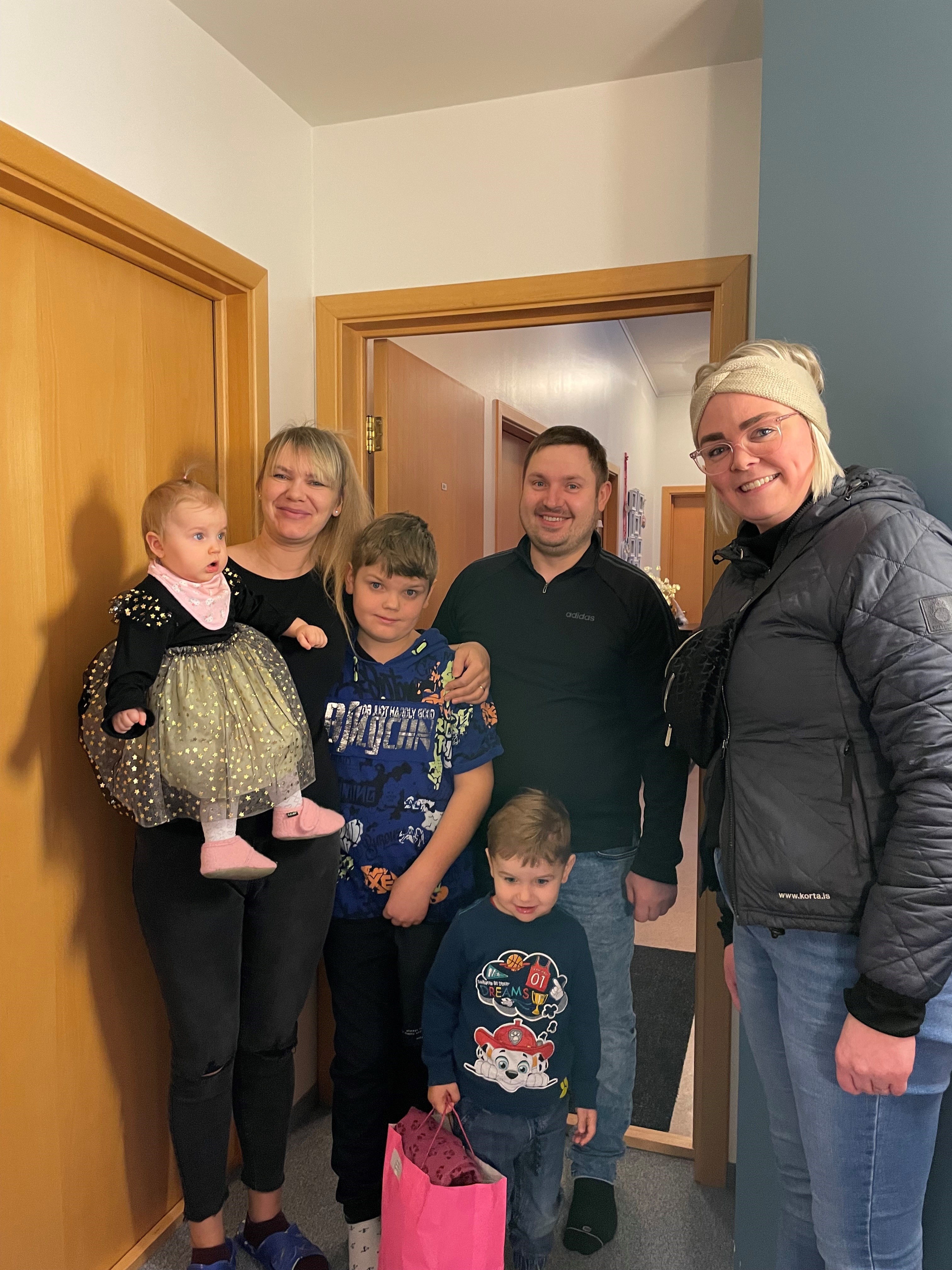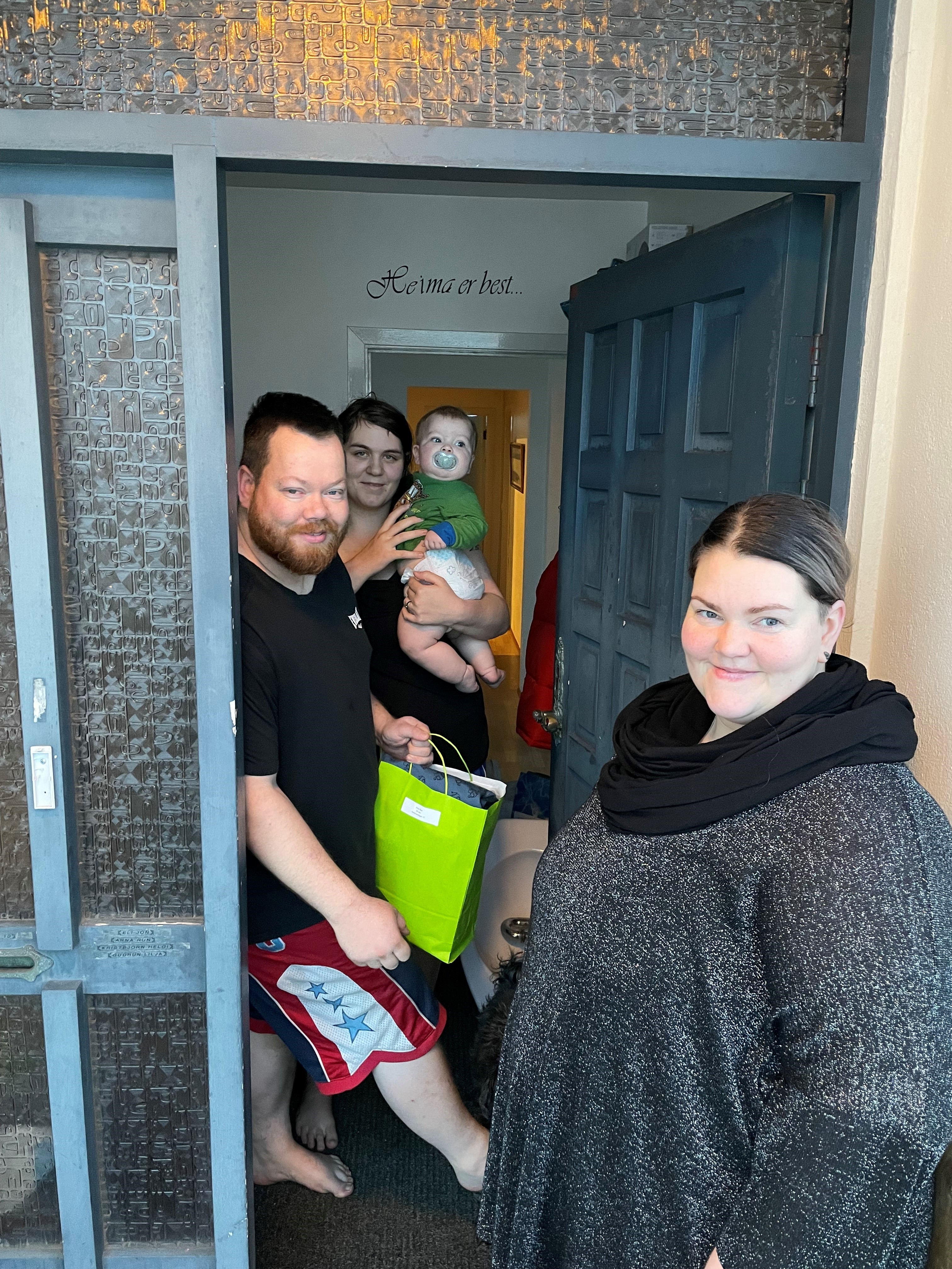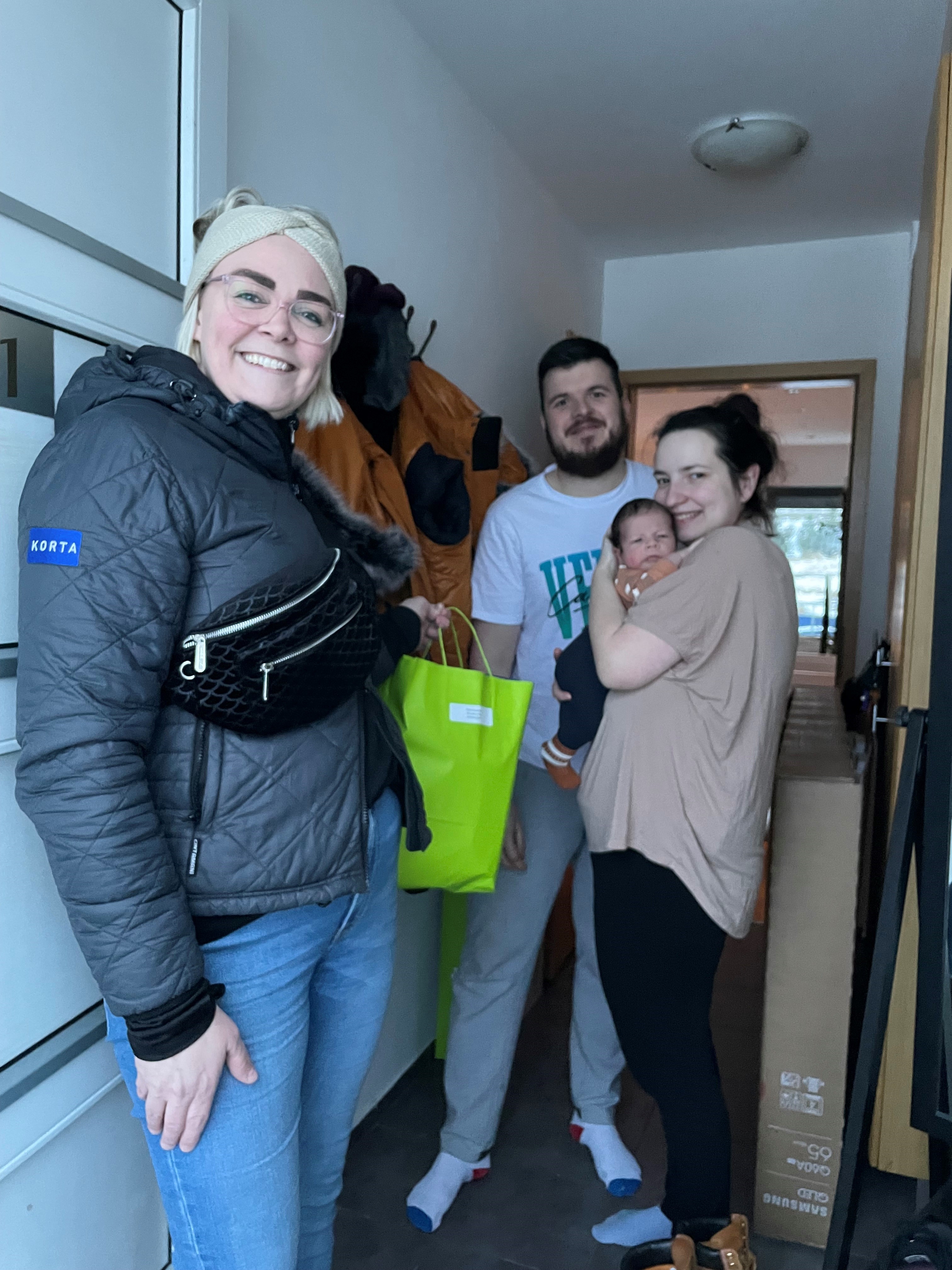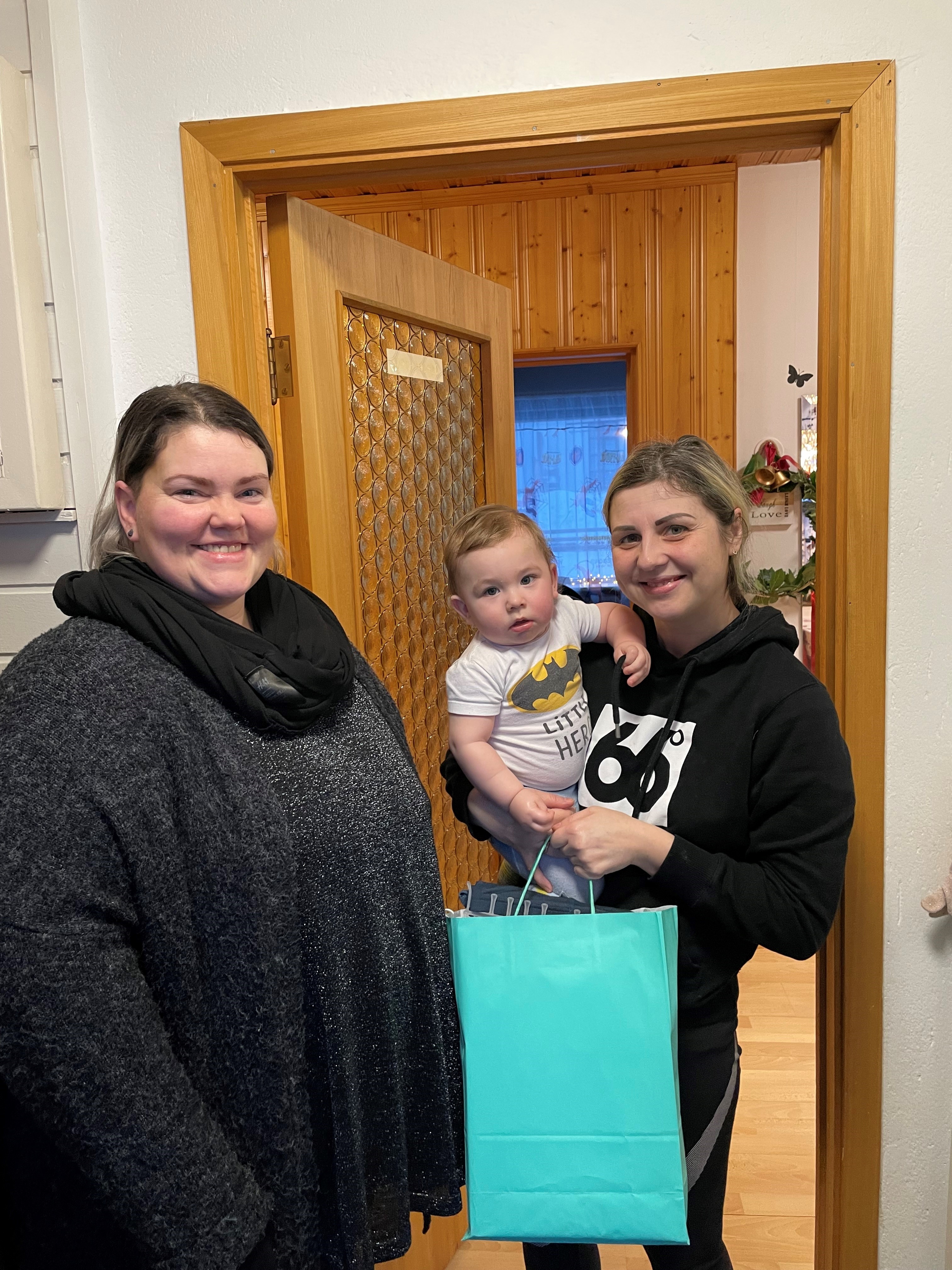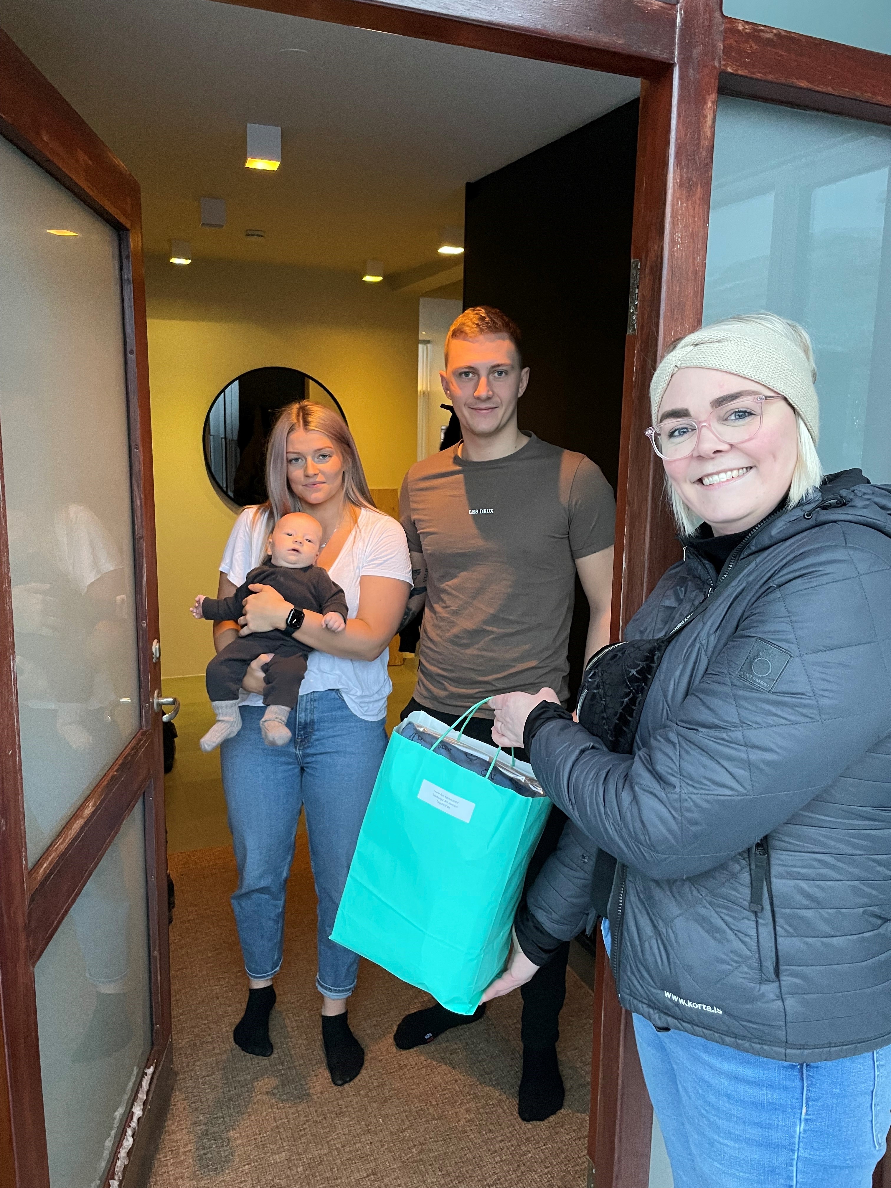 Hér má sjá myndir af afhendingu sængurgjafa samfélagsins til nokkurra foreldra og barna.