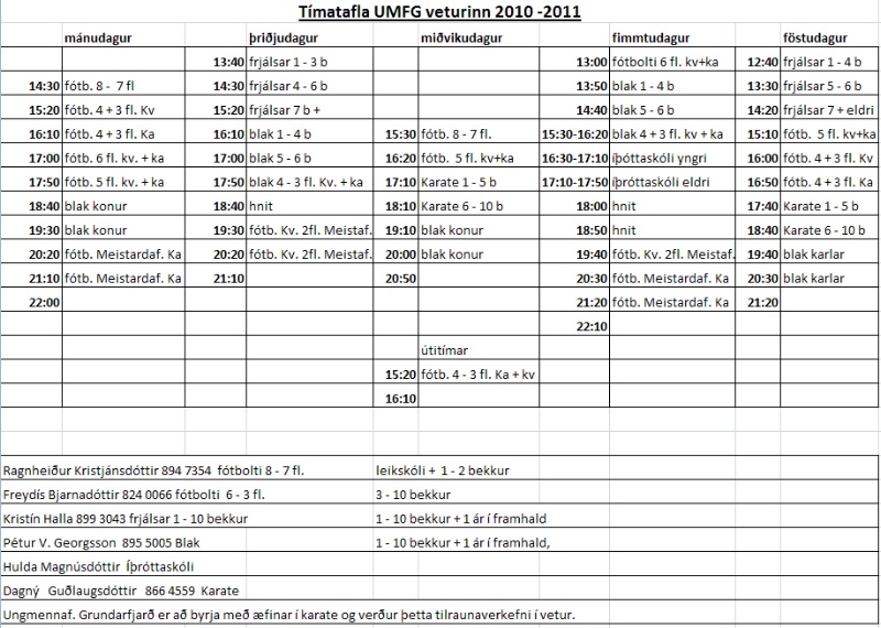 Enn á ný hafa verið gerðar breytingar á tímatöflu UMFG veturinn 2010-2010.