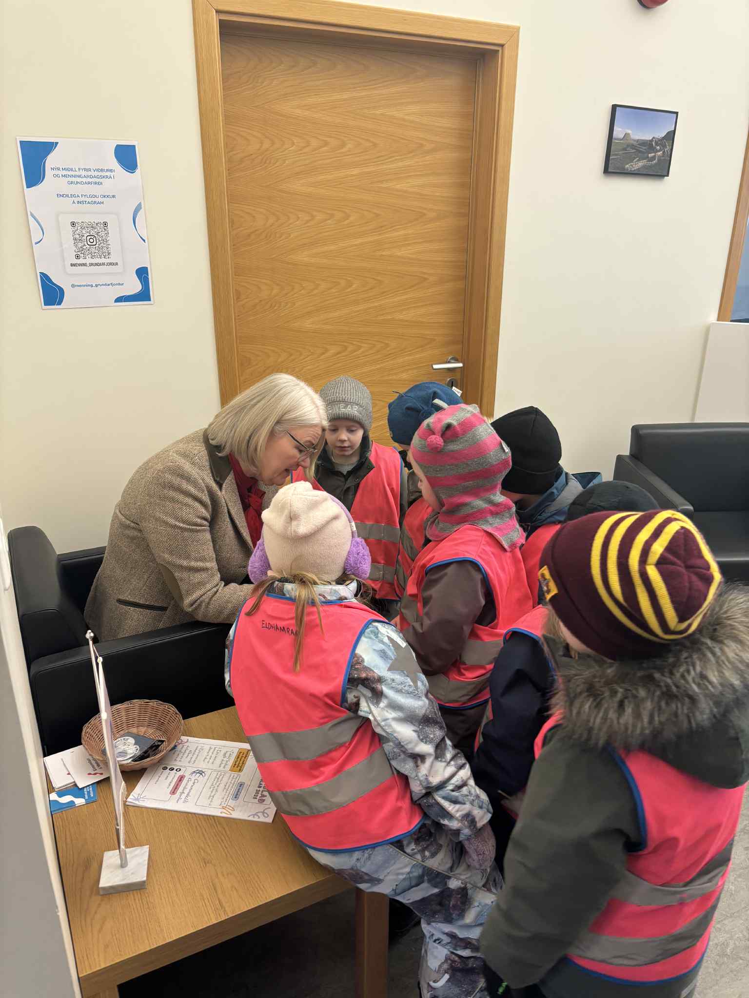 Börnin á Eldhömrum mættu á bæjarskrifstofuna þann 5. febrúar og buðu bæjarstjóra með formlegu boðskorti á sjóræningjahátíð.