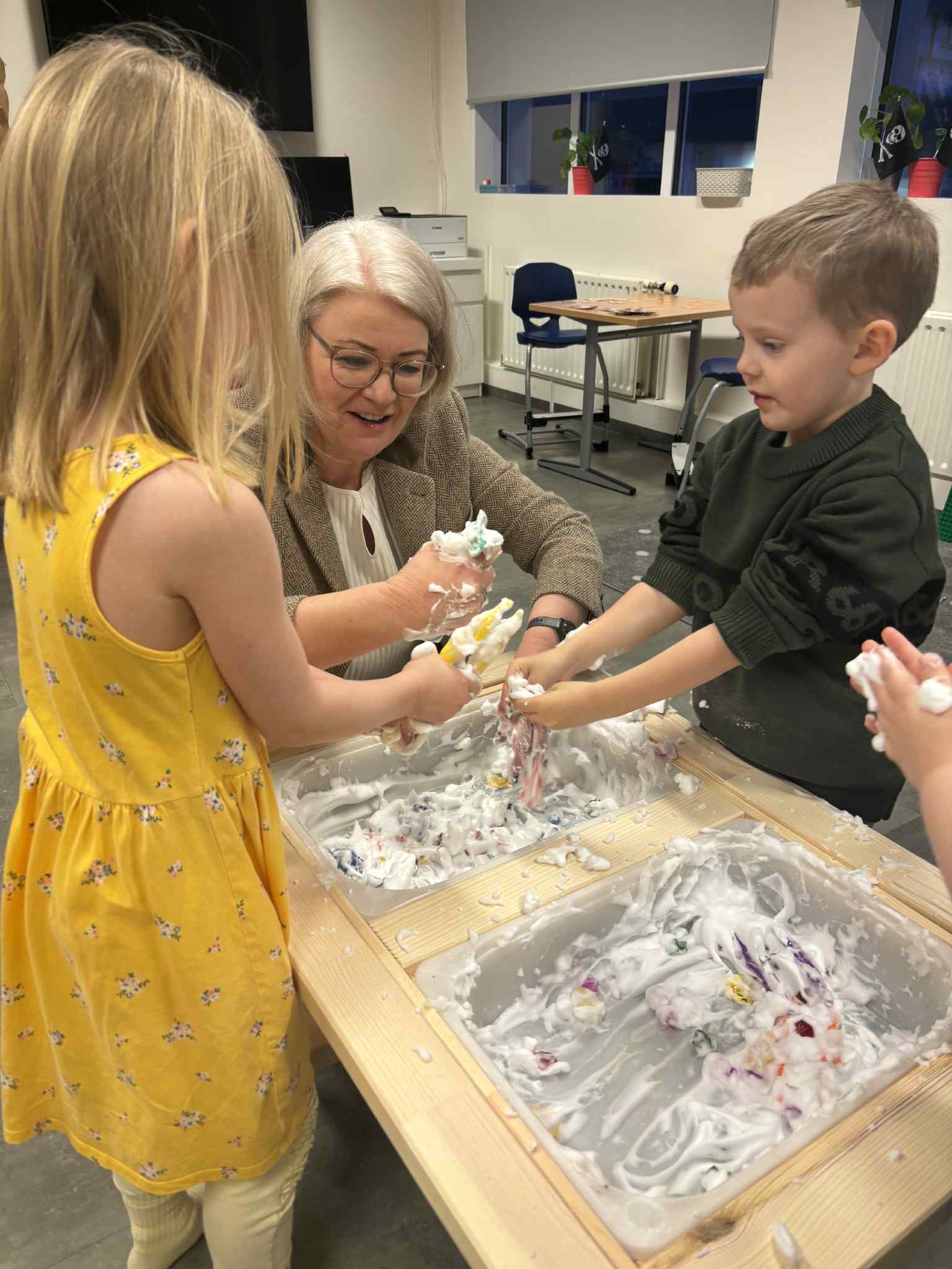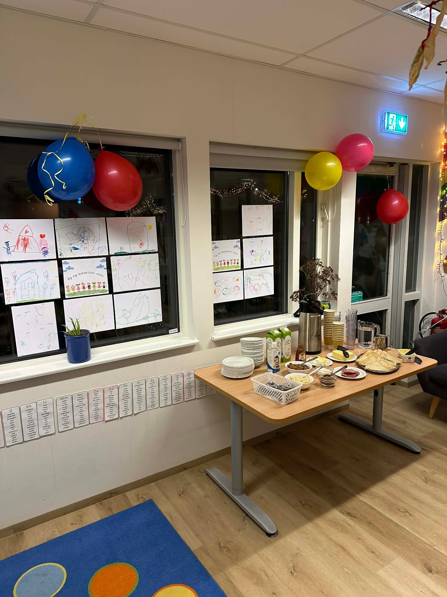 Markmiðið með degi leikskólans er að auka jákvæða umræðu um leikskólastarf og einblína á það faglega og metnaðarfulla starf sem unnið er í leikskólum landsins. Að sjálfsögðu var dagurinn því haldinn hátíðlegur í Leikskólanum Sólvöllum. Undirbúningur hófst í byrjun þessarar viku þar sem börnin fengu að segja hvað þau vildu gera. Börnin völdu að baka köku sem yrði svo borðuð í eftirrétt í hádeginu. Þau fengu að baka hana í gær, fimmtudag, með aðstoð kennaranna sinna og skreyttu kökuna svo í dag með bláu og grænu kremi. Einnig var opið hús fyrir foreldra milli 8 til 9 þar sem þau gátu komið í heimsókn og notið þess að borða morgunmat með börnunum sínum.