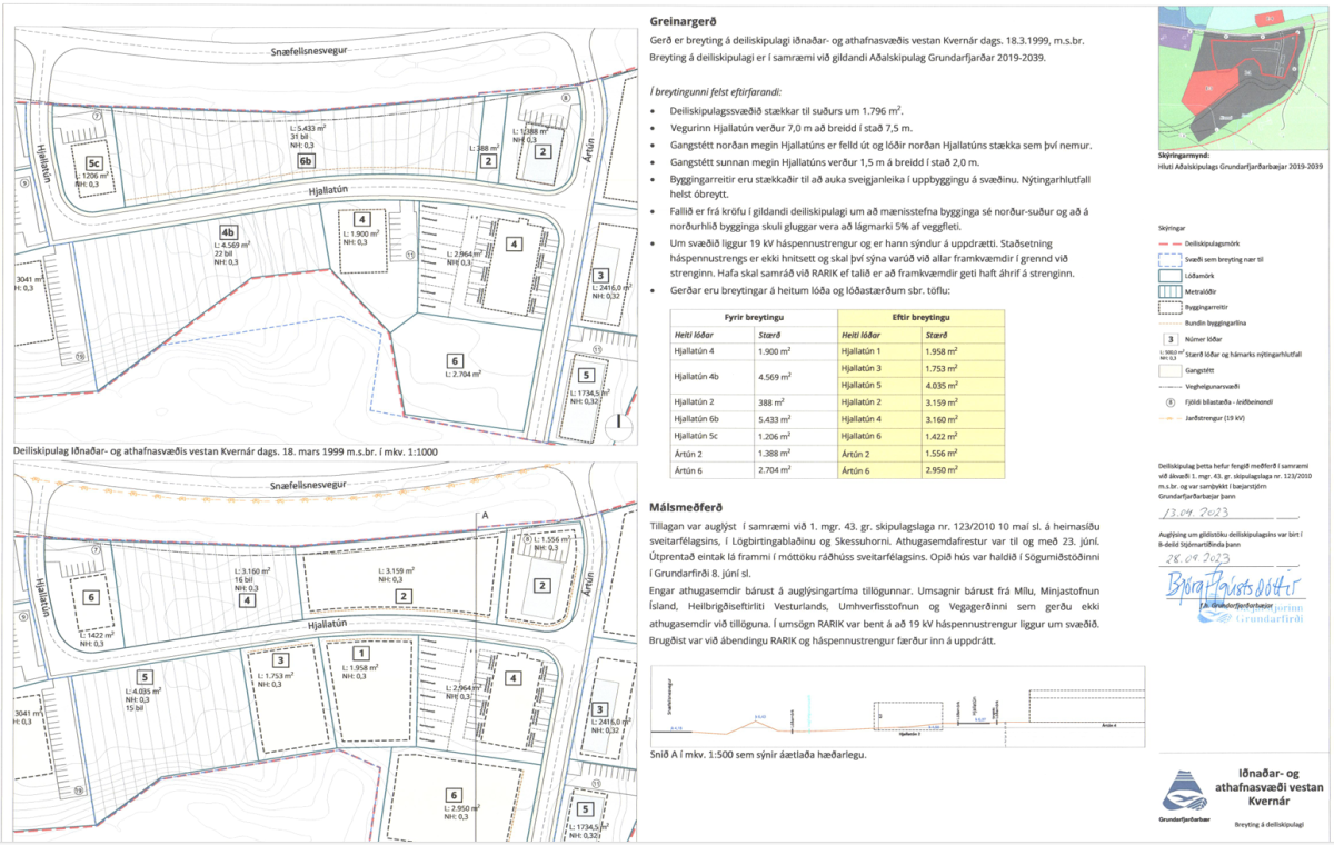 Gerð hefur verið breyting á deiliskipulagi iðnaðar- og athafnasvæðis vestan Kvernár dags. 18.3.1999 m.s.br. Breyting á deiliskipulagi er í samræmi við Aðalskipulag Grundarfjarðar 2019-2039.