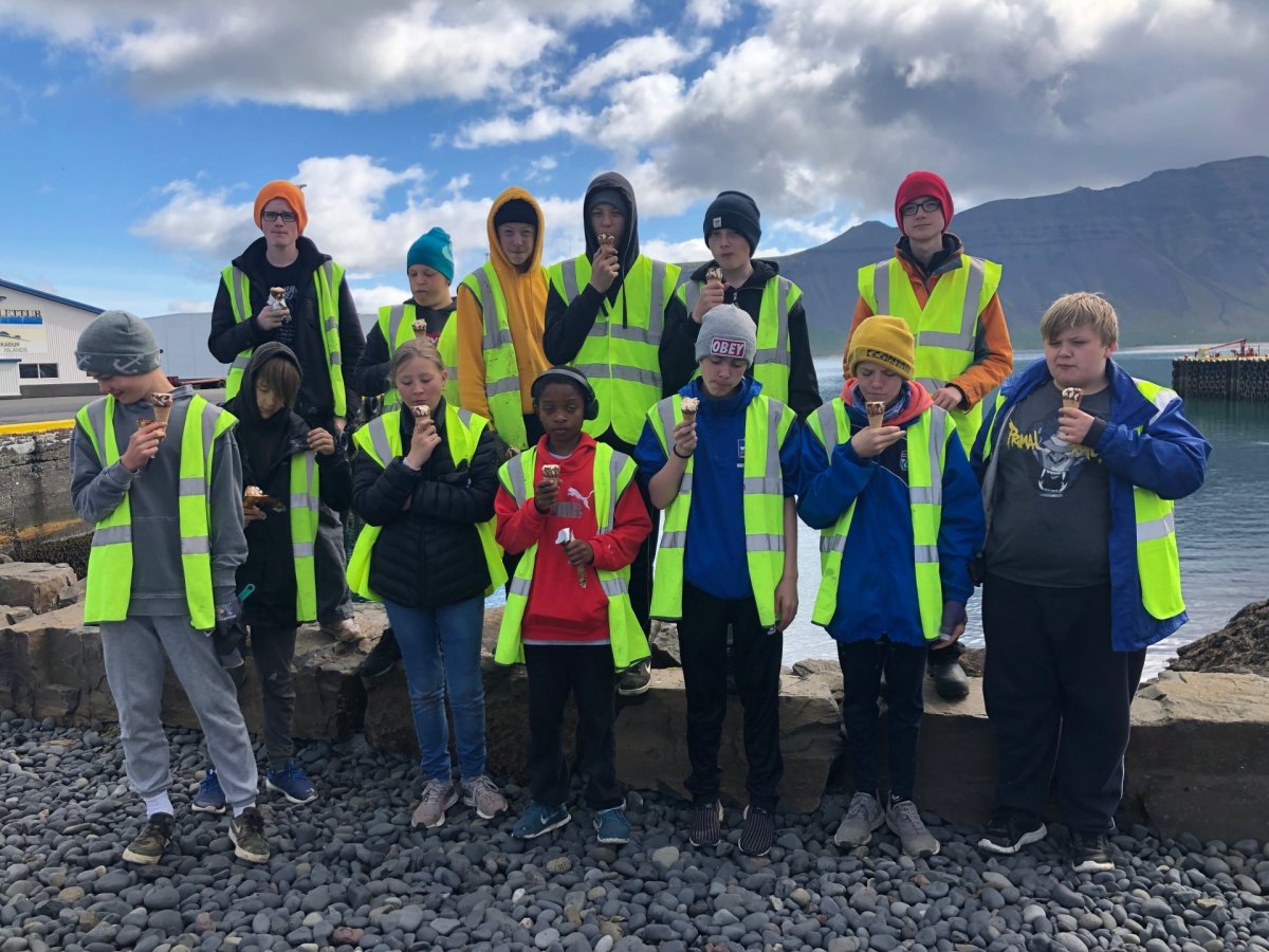 Hreinsaður var gróður í grjótbeði og á milli hellna. Að verklokum gaf hafnarstjóri vinnufólkinu ís sem þakklætisvott, sem gladdi mannskapinn.