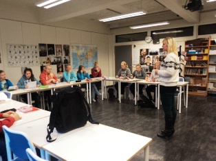 þann lottóvinning að fá til okkar svokallaðan farkennara frá Danmörku. Þetta er verkefni sem hefur verið í gangi hér á Íslandi í mörg mörg ár og er styrkt af Danska sendiráðinu og Danaveldi sjálfu. Daman sem við fengum hetiri Stine Falk og verður hún hjá okkur í 4 vikur. Hún býr inni í Stykkishólmi, en þar er hún búin að vera í 4 vikur og svo þegar hún er búin með þessar vikur hér fer hún út í Snæfellsbæ. Allir nemendur skólans, sem eru núna í dönsku, njóta góðs af komu hennar því hún leggur sérstaklega mikið upp úr að nemendur tali dönsku í tímunum, enda talar hún bara dönsku við þá.