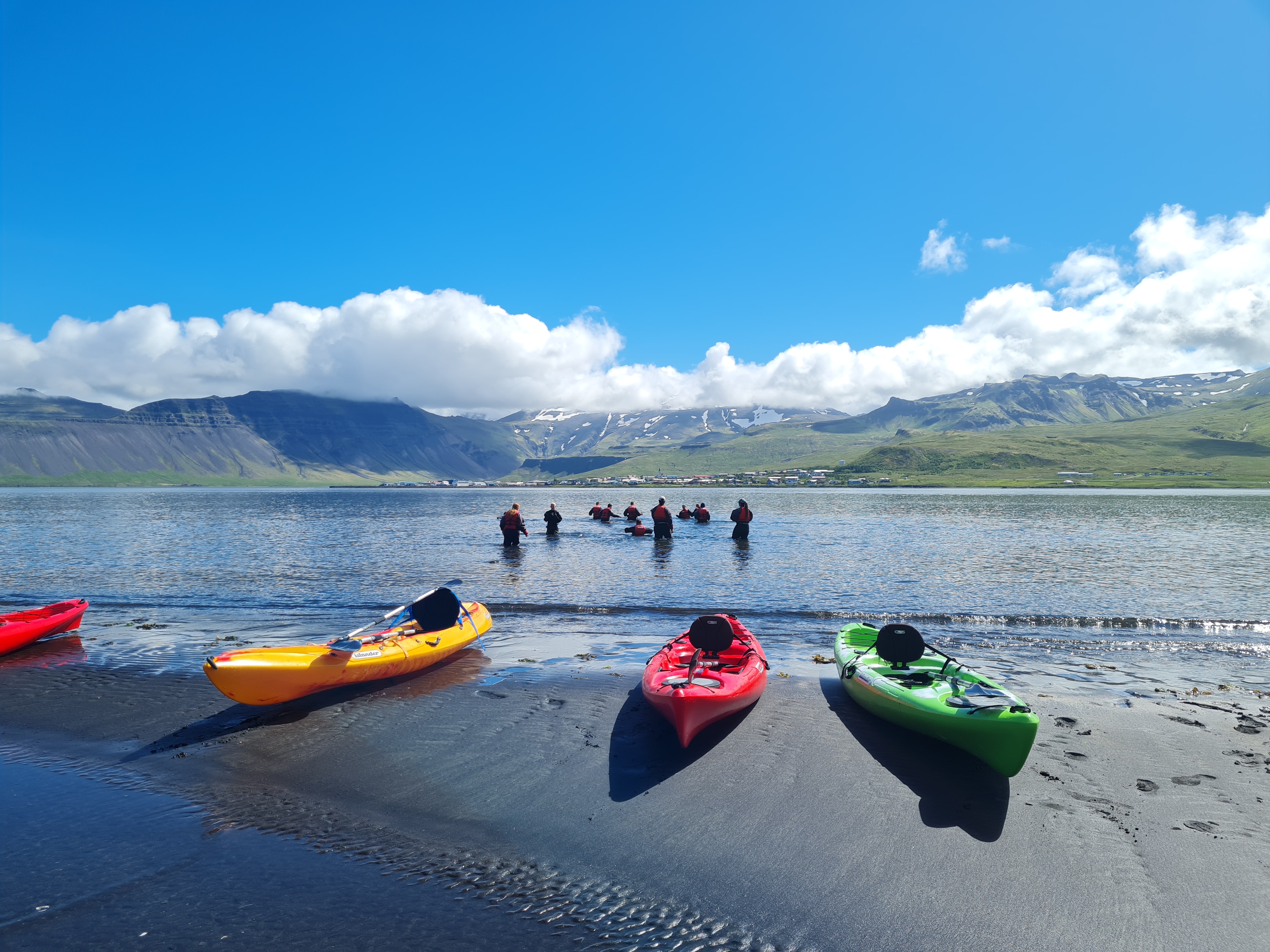 Á lokadeginum, föstudaginn 8. júlí sl., gerðu krakkarnir ásamt umsjónarmanni sér glaðan dag. Óli íþróttafulltrúi og Valdís umsjónarmaður sáu til þess að öll fengju grillaðar pylsur í hádeginu og toppurinn á fimm vikna starfi var síðan kajakferð út á fjörðinn í algerlega dásamlegu veðri.