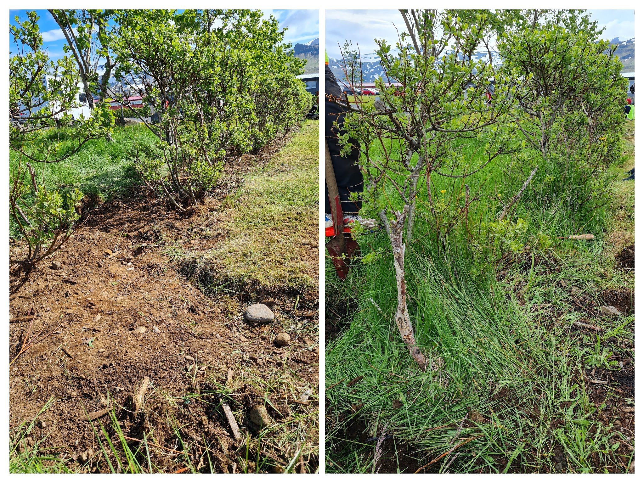 Sæbólsbeðið var tekið rækilega í gegn ásamt því að raka steina af grasblettinum við pylsuvagninn eftir snjómokstur vetrarins.