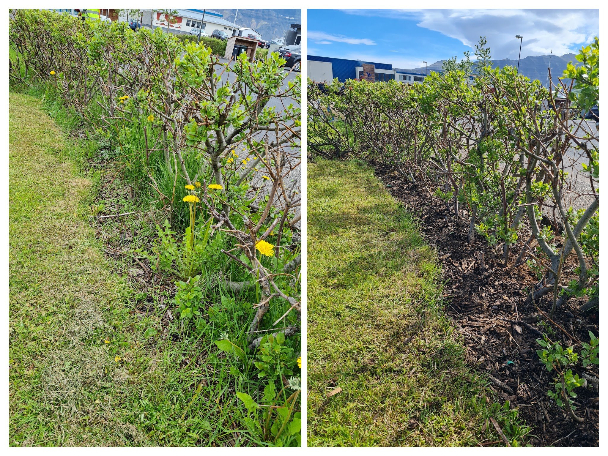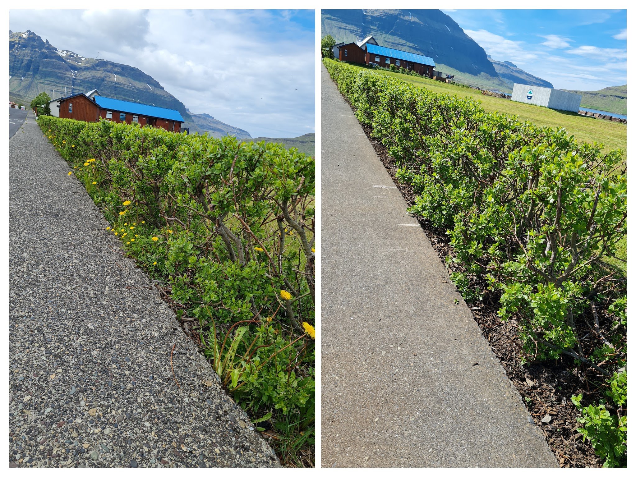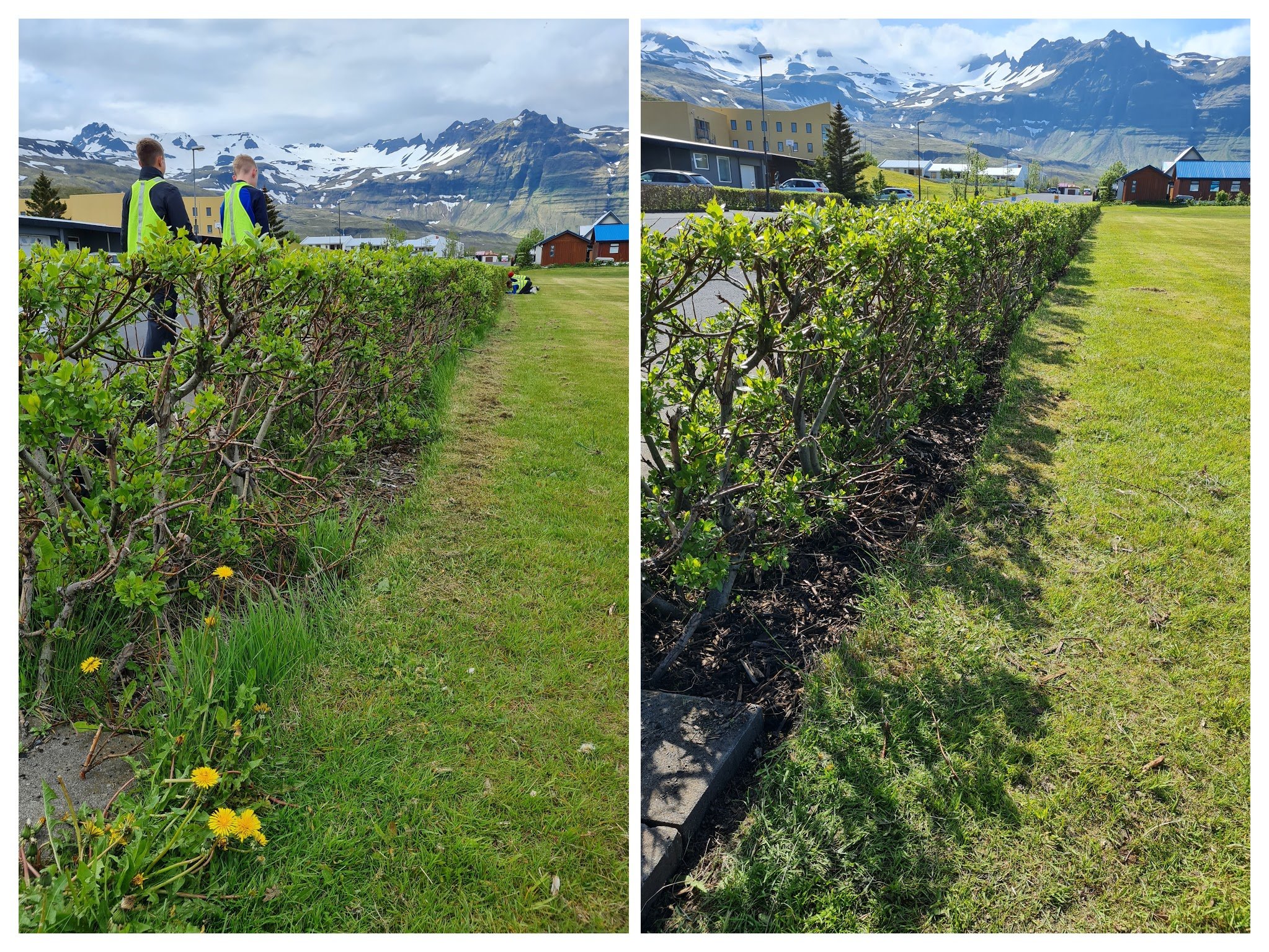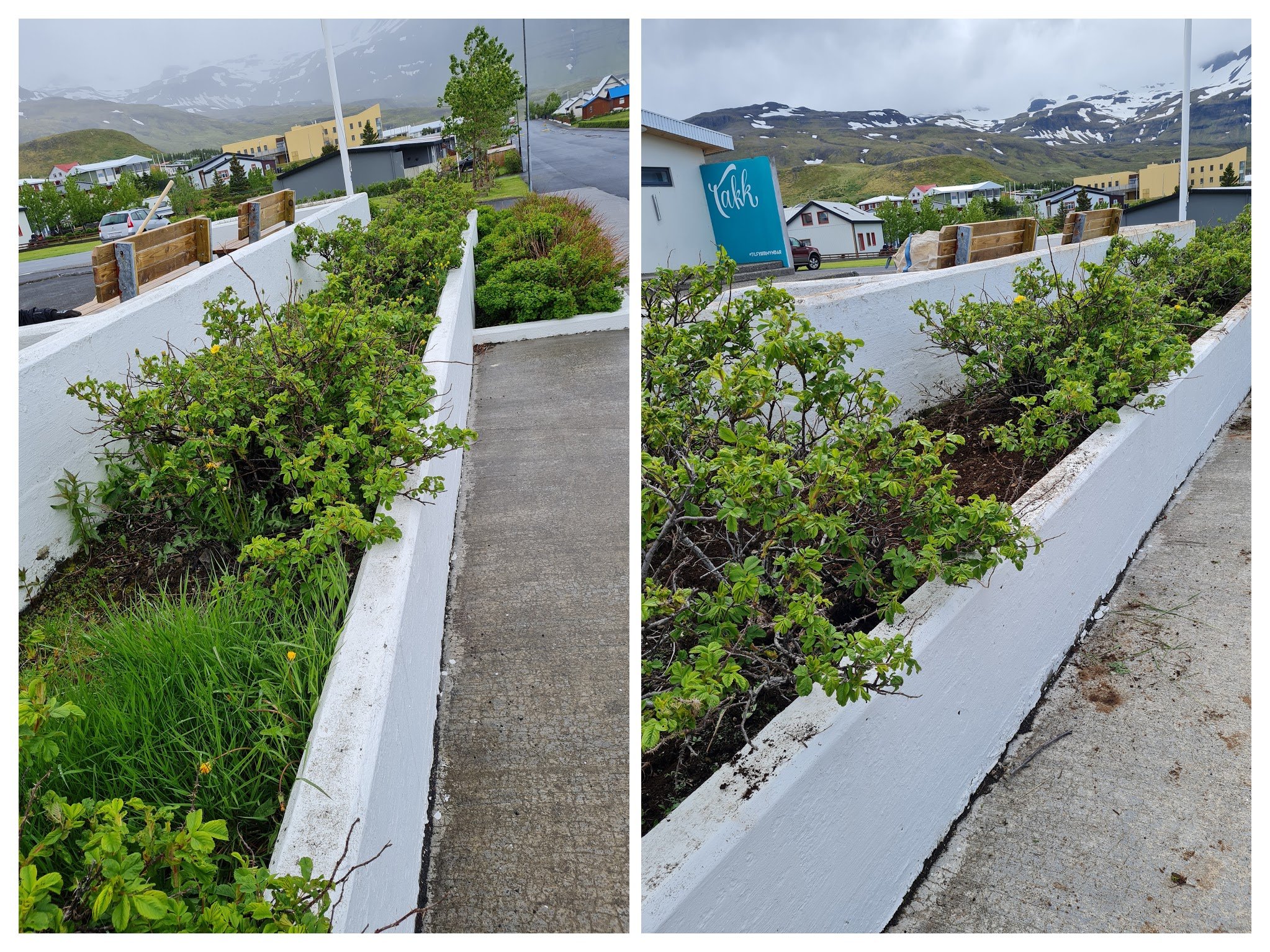Í viku þrjú var veðrið allskonar og þar af leiðandi verkefnin líka. Haldið var áfram að hreinsa beð í Paimpolgarði. Þetta var heljarinnar vinna eins og sést á myndunum. Hreinsað var í kringum bæjarskrifstofu, Sögumiðstöðina og meðfram gangstéttum víðs vegar um bæinn.