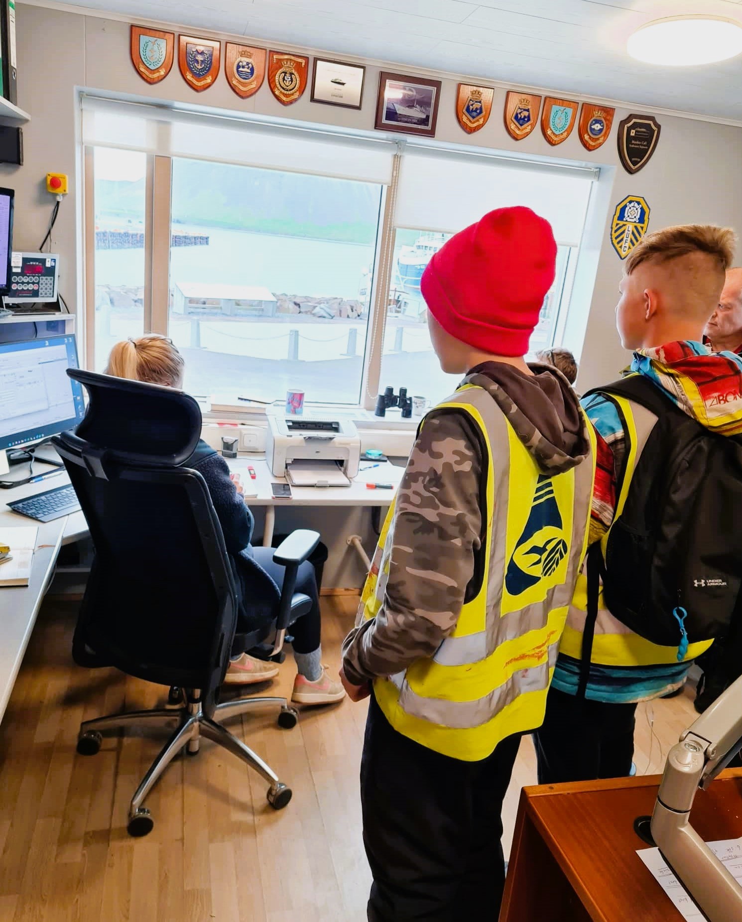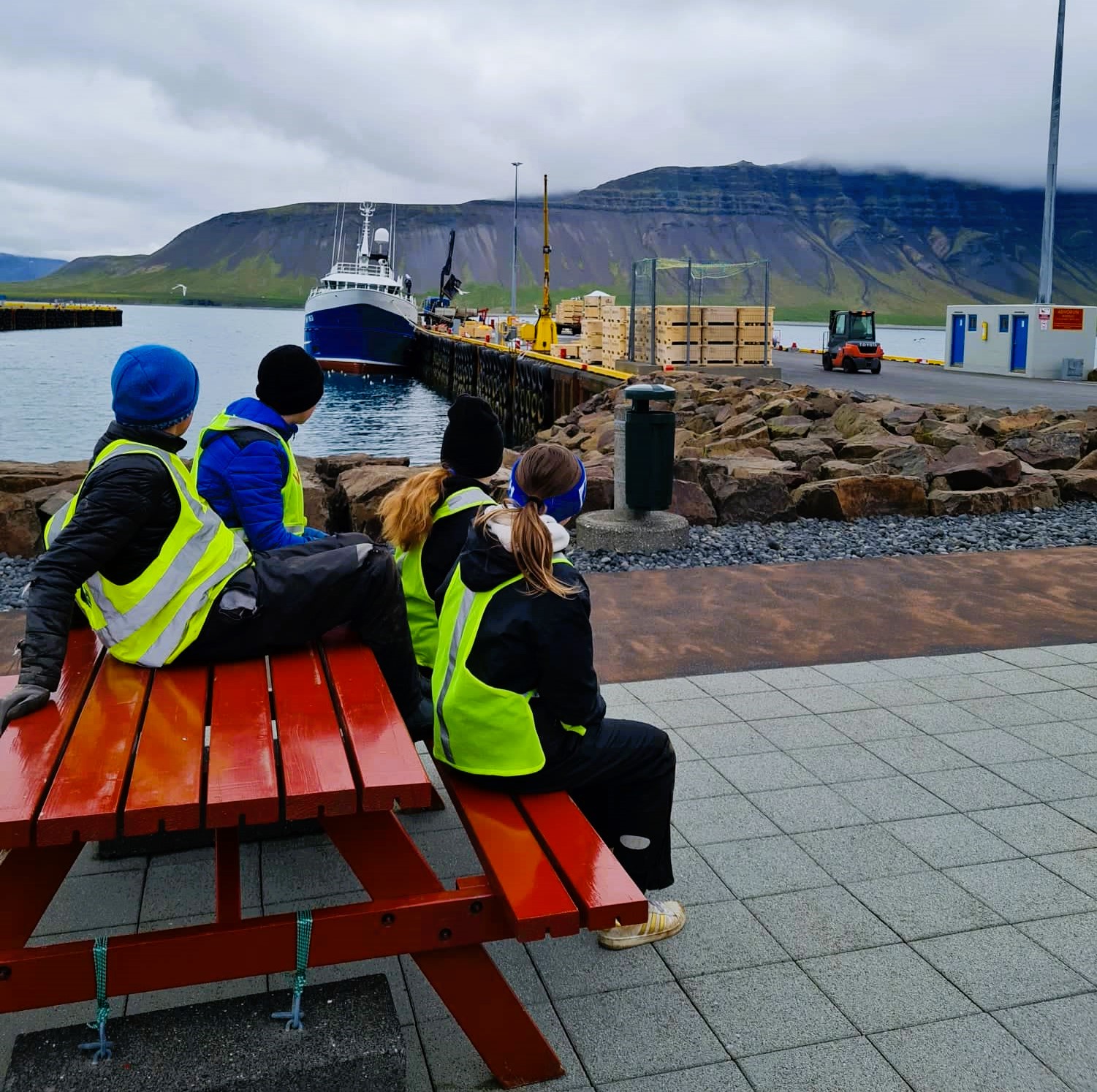 Í fjórðu viku fóru krakkarnir í vinnustaðaheimsókn niðrá höfn þar sem þau fengu að fylgjast með löndun úr togara. Grundarfjörður er sjávarpláss og því er fróðlegt að sjá hvernig vinnan fer fram á höfninni. Hafsteinn, Steinar og Patrycja starfsmenn Grundarfjarðarhafnar sýndu krökkunum hvernig vigtun á sjávarafla fer fram og farið var yfir þau fjölbreyttu störf sem hafnarverðir gegna. Farið var yfir hvað gerist við löndun og hvaða ákvarðanir liggja að baki því hvert fiskurinn er sendur og eftir hvaða leiðum. Það var virkilega vel tekið á móti krökkunum á höfninni og öllum spurningum svarað greiðlega.