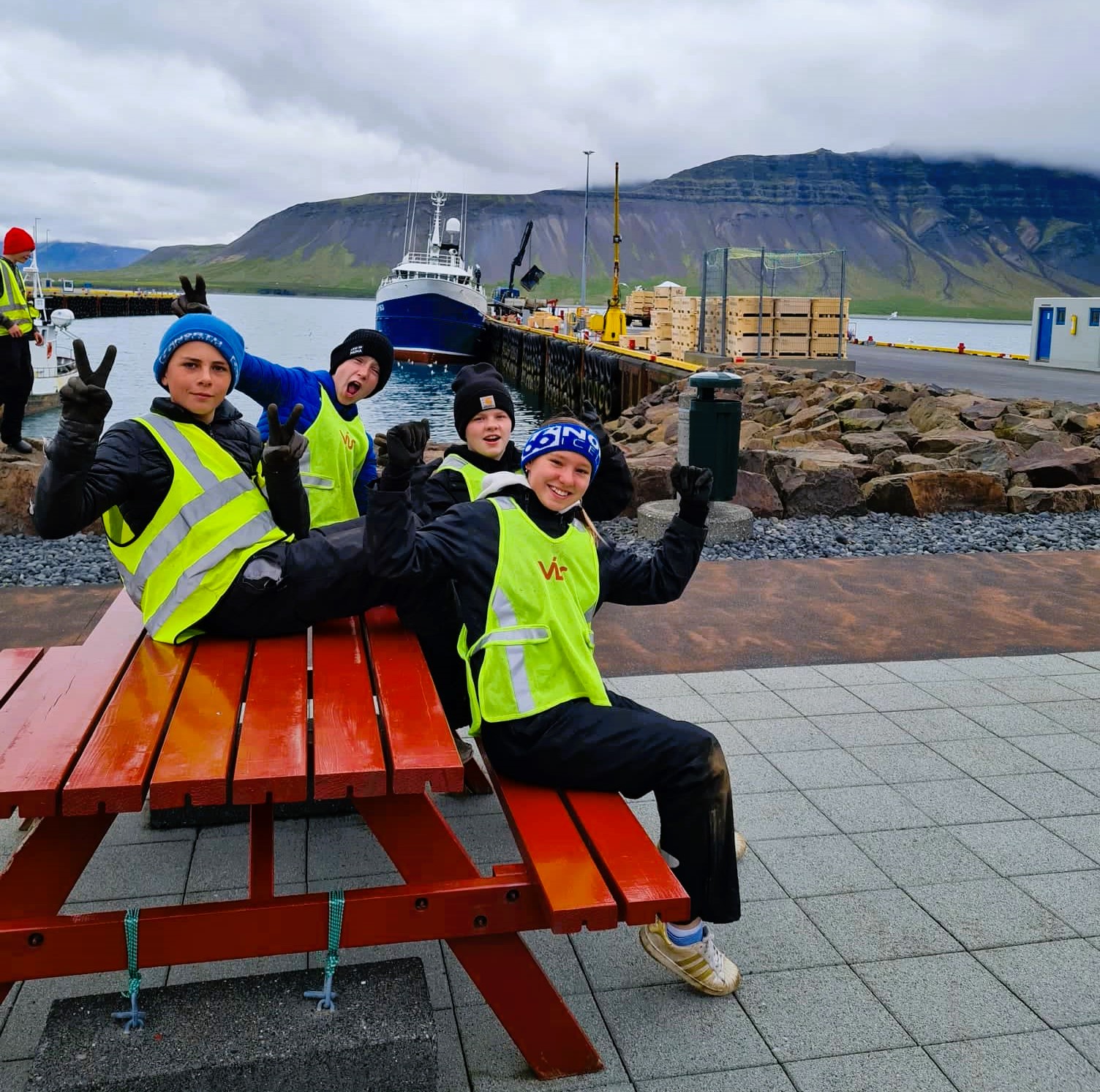 Fyrsta verk krakkanna var að gera fínt niðrá höfn fyrir sjómannadaginn. Þau tíndu heil ósköp af rusli á hafnarsvæðinu, aðallega í grjótgarðinum sem er ágætis gildra fyrir rusl sem fýkur yfir veturinn. Afraksturinn var á að giska 30 ruslapokar og auk þess hreinsuðu þau gras og arfa úr steinabeði fyrir framan hafnarvogina.