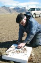 Í gær var stórstreymt og þótti Arnóri bónda fyrirséð að flæða myndi yfir hreiðrið að óbreyttu því flóðhæð verður þarna yfir fjórir metrar. Ákvað Arnór því að setja frauðplastsplötu við hreiðurstæðið sem fest er með bandi við jarðfastan tein og færði hreiðrið í skál sem hann gerði í plötuna. Þessum tilfæringum tók tjaldurinn afar vel og lagðist á eggin sín fjögur eins og ekkert hefði í skorist, enda hreiðurstæðið vafalaust hlýrra og notalegra eftir breytinguna. Sverrir Karlsson ljósmyndari tók meðfylgjandi mynd meðan Arnór var að koma hreiðrinu fyrir og fylgdist með í gær þegar háflóð var í Kolgrafafirði.
