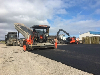 Malbikunarframkvæmdir hófust í Grundarfjarðarbæ í gær en þá var Sæbólið malbikað og er nú orðið eins og fínasta breiðgata. Í dag eru starfsmenn Kraftfags mættir við sundlaugina með vinnuvélarnar til að malbika planið fyrir framan og niður fyrir húsið, að Líkamsræktinni og Tónlistarskólanum.