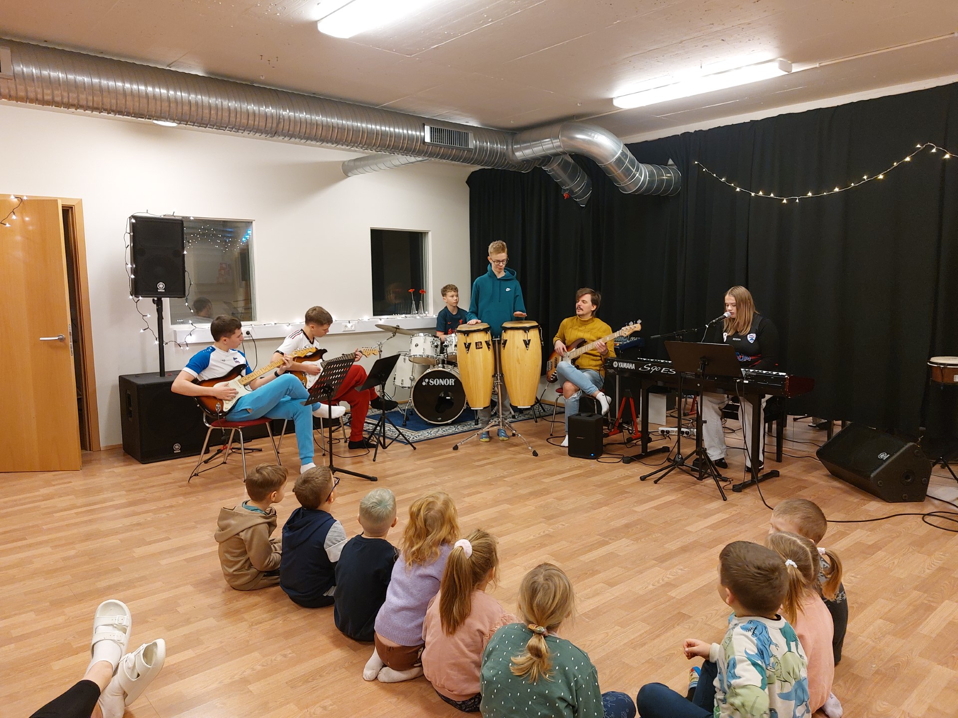 Nemendur Eldhamra kíktu í heimsókn í tónlistarskólann og hlustuðu á æfingu hjá skólahljómsveitinni og sungu með þeim nokkur vel valin jólalög. Skemmtileg uppbrotsvika sem við hlökkum til að endurtaka.