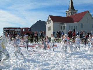 Börn og fullorðnir skemmtu sér vel á Kirkjutúninu í dag.