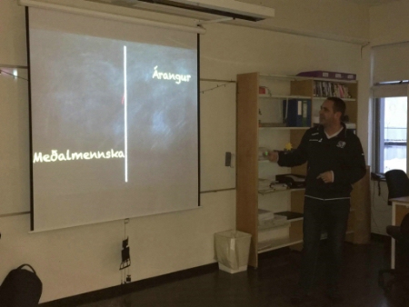 | Nemendur í 7.-10. bekk hlustuðu á Halldór Björnsson í skólanum í morgun. Þar lagði hann áherslu á hvað þarf til að ná árangri í lífinu. |