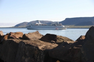 Fyrsta skemmtiferðaskip sumarsins í Grundarfirði "Arielle" kom á ytri höfnina kl. 07.00 í dag 12. júní í afar fallegu veðri. Ekki er unnt að taka betur á móti erlendu ferðafólki sem fýsir að sjá landið og kynnast því en með þeirri óviðjafnanlegu fjallasýn sem við blasir í Grundarfirði.