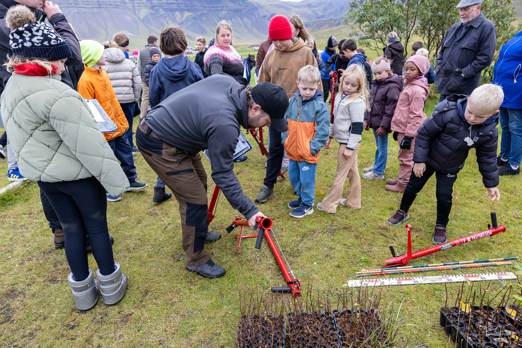 Í heildina voru um 600 tré, sem Lionsklúbburinn í Grundarfirði gaf, gróðursett og er hlutverk þeirra að búa til skjól fyrir skólalóðina og skólabrekkuna.