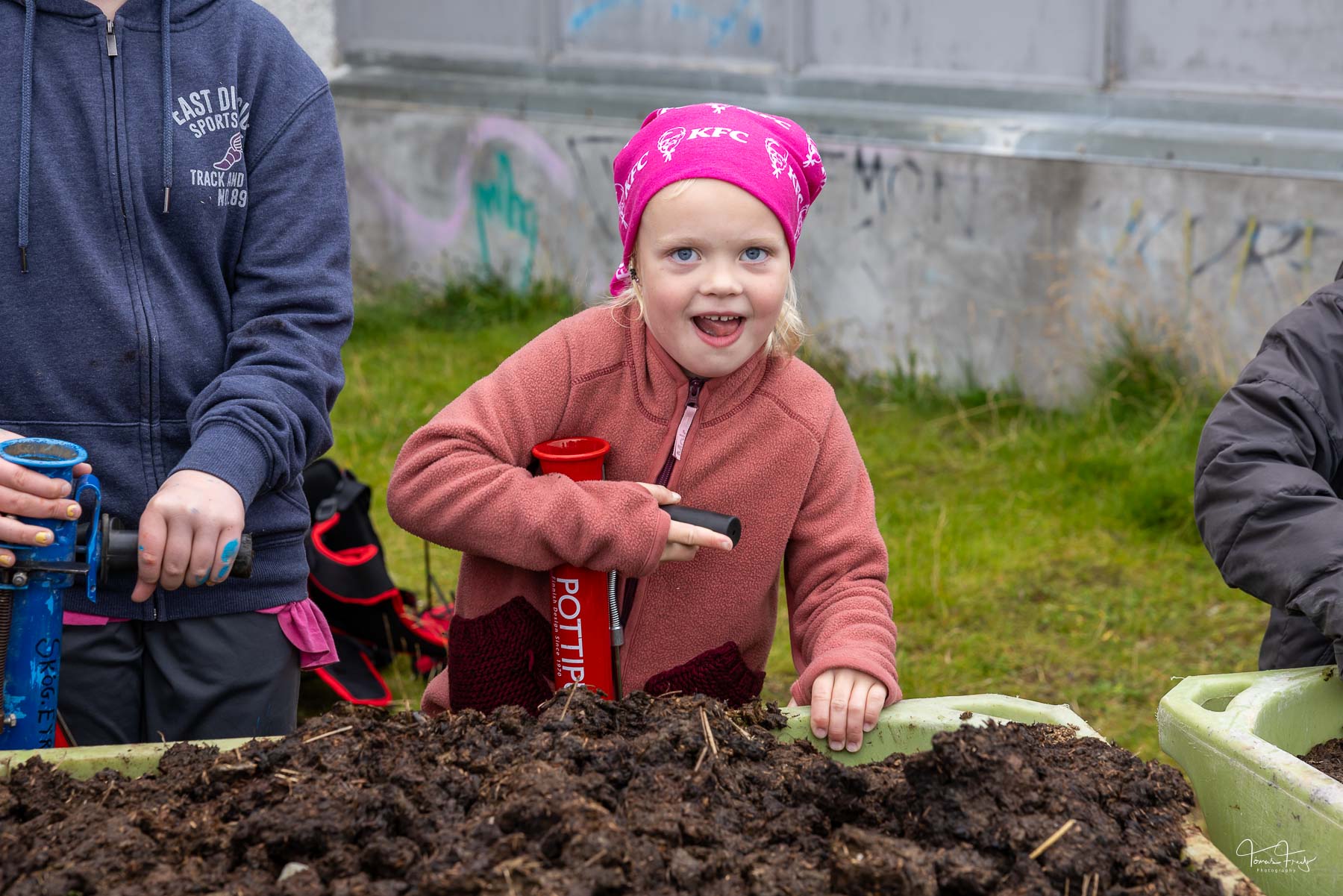 Hreinir fingur urður grænir og síðan brúnir á örskotsstundu þegar krakkarnir hófust handa. Geispan var gripin og með henni gerð hola í jörðina, tré var sett í holuna og í kjölfarið borinn á skítur. Verkaskipting var góð og voru flest tilbúin í öll verk þrátt fyrir að skíturinn hafi hrætt sum í fyrstu.