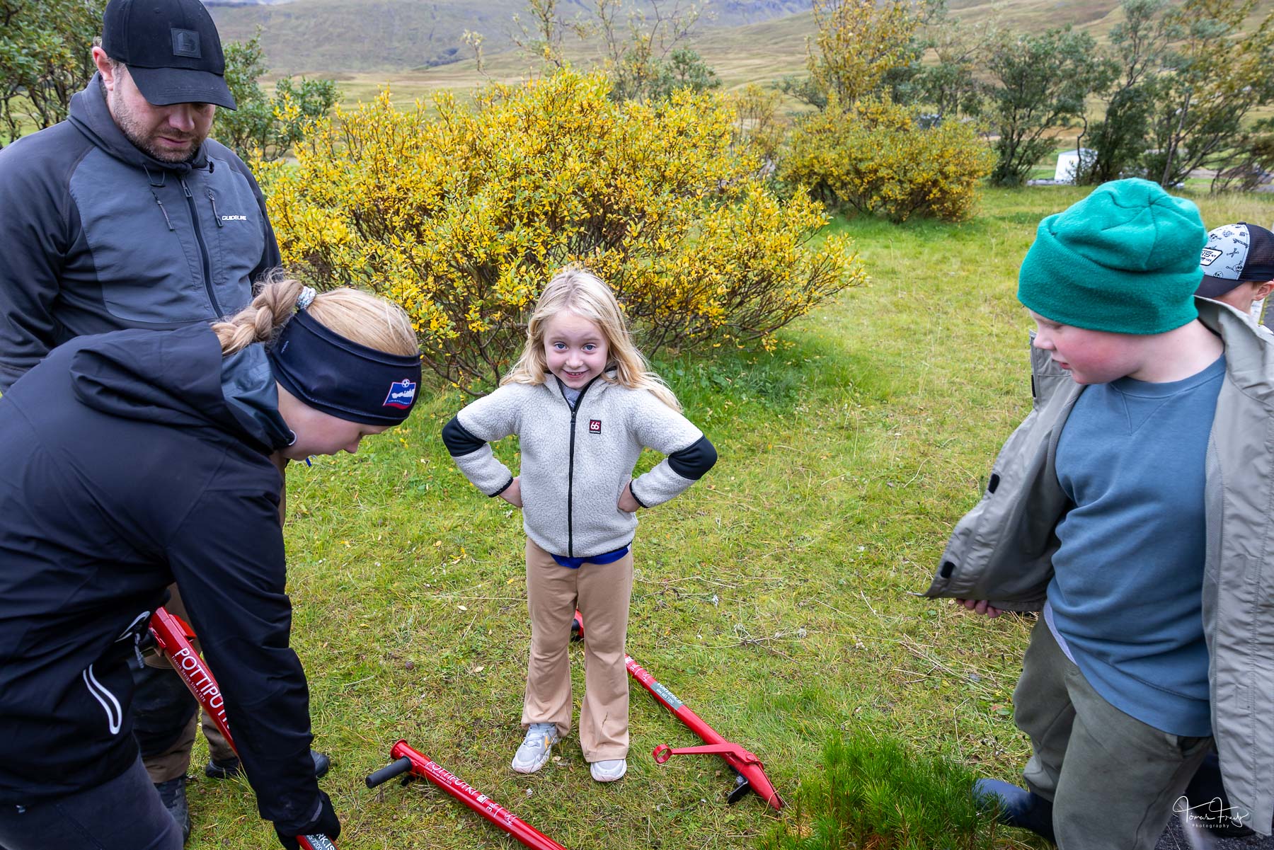 Mikil spenna var í krökkunum þegar þau sáu þrjú full fiskikör af skít, skóflur, hjólbörur og geispur. Hjálmar Gunnarsson, Jón Pétur Pétursson og Signý Gunnarsdóttir frá Skógræktarfélagi Eyrarsveitar kenndu helstu handtökin við gróðursetningu og voru krökkunum innan handar.