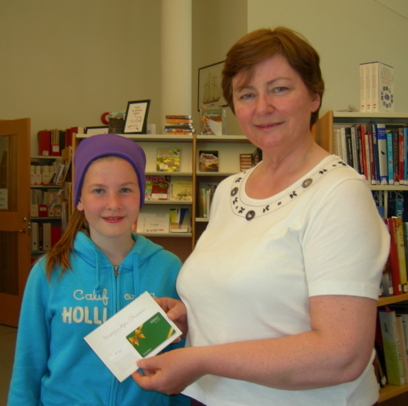 Kristbjörg Ásta Viðarsdóttir fékk 2. verðlaun í Stóru upplestrarkeppninni í 7 bekk veturinn 2011-2012. Keppnin fór fram í Ólafsvíkurkirkju í mars 2012. Hún kom á bókasafnið í sumar og færði bókasafninu að gjöf inneignarkort frá Eymundsson sem henni var fært sem viðurkenningu fyrir góðan upplestur. Fyrir hönd Bókasafns Grundarfjarðar þakka ég góða gjöf og vona að þessar bækur komi okkur öllum að góðum notum. Sunna. | |