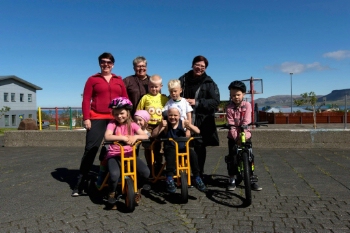 Leikskóladeildin Eldhamrar fékk góða heimsókn frá kvenfélaginu Gleym mér ei í gær, 13. júní. Það voru þær Mjöll og Sólrún Guðjónsdætur sem komu færandi hendi fyrir hönd kvenfélagsins með tvö hjól til leikskóladeildarinnar sem Anna Rafnsdóttir, deildarstjóri Eldhamra, veitti viðtöku.
