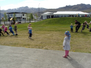 Þeir komu með harðfisk fyrir alla, fiska til að skoða og fóru í reipitog við nemendur. Bestu þakkir og kveðjur til allra sjómanna frá Leikskólanum Sólvöllum.