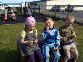 Það er orðinn fastur liður að fulltrúar frá sjómannadagsráði mæti í Leikskólann Sólvelli og hiti upp fyrir helgina. Í morgun í góðu veðri mættu Gummi og Steinar.