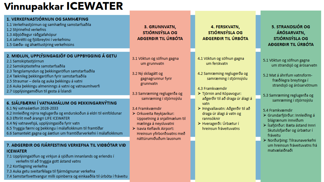 Þar segir einnig að styrkurinn fyrir LIFE ICEWATER sé einn sá stærsti sem Ísland hefur fengið. Umfang verkefnanna sem samstarfshópurinn hefur sett saman er samtals um 5,8 milljarðar króna. LIFE áætlun Evrópusambandsins styrkir verkefnið um 60% af heildarkostnaði eða samtals um 3,5 milljarða sem dreifast á samstarfshópinn og verða verkefnin unnin á árunum 2025-2030.