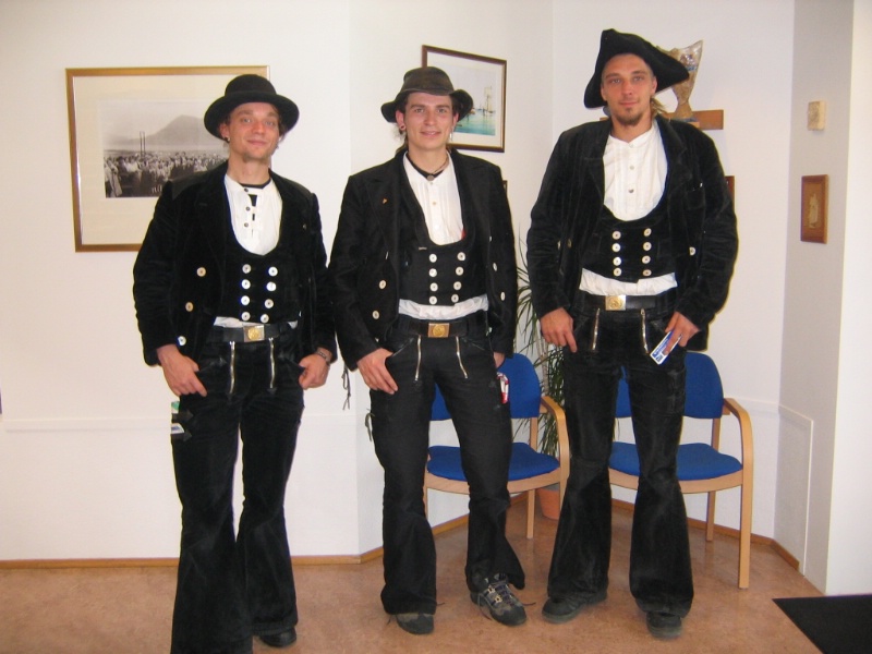 Þrír þjóðverjar komu í heimsókn í Grundarfjörð í vikunni. Þessir þrír menn vinna sem farandverkamenn og eru að ferðast um heiminn. Þeir komu við á bæjarskrifstofunni til þess að fá stimpil og kvittun fyrir því að þeir hafi komið til Grundarfjarðar. Klæðnaðurinn hjá þeim er samkvæmt gamalli hefð í Þýskalandi.