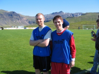Skemmtiferðaskipið Funchal lá við bryggju í Grundarfjarðarhöfn miðvikudaginn 20. júlí. Áhöfn skipsins og grundfirskir piltar öttu kappi saman í fótbolta í gær. Mikið fjör var á vellinum og fóru heimamenn með sigur af hólmi.
