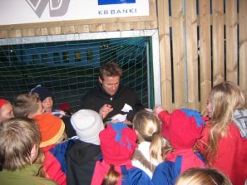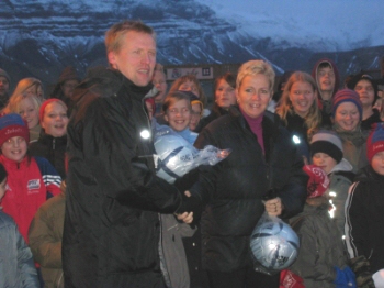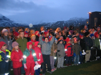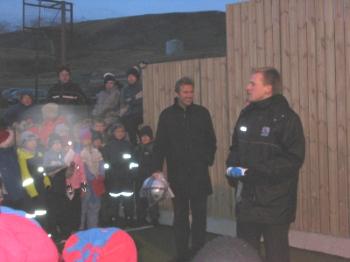 Grunnskólanum voru afhentir boltar frá Evrópska knattspyrnusambandinu (UEFA) auk þess sem sambandið færði Ungmennafélagi Grundarfjarðar gjafabréf. Nemendum grunnskólans var gefið frí á meðan á athöfninni stóð og ríkti mikil gleði meðal þeirra yfir heimsókninni. Meðfylgjandi myndir voru teknar við athöfnina.