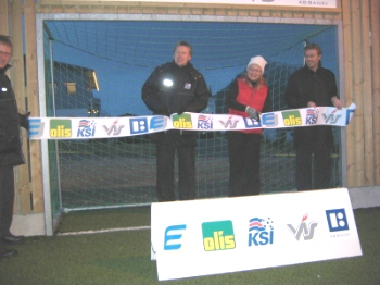 Fulltrúar KSÍ, þeir Eyjólfur Sverrisson, fyrrum atvinnumaður í knattspyrnu, Geir Þorsteinsson, framkvæmdastjóri KSÍ og Jakob Skúlason, landshlutafulltrúi KSÍ, afhentu formlega þá gjöf sem fólst í lagninu gervigrassins á sparkvöllinn sem lagður hefur verið á lóð Grunnskóla Grundarfjarðar.