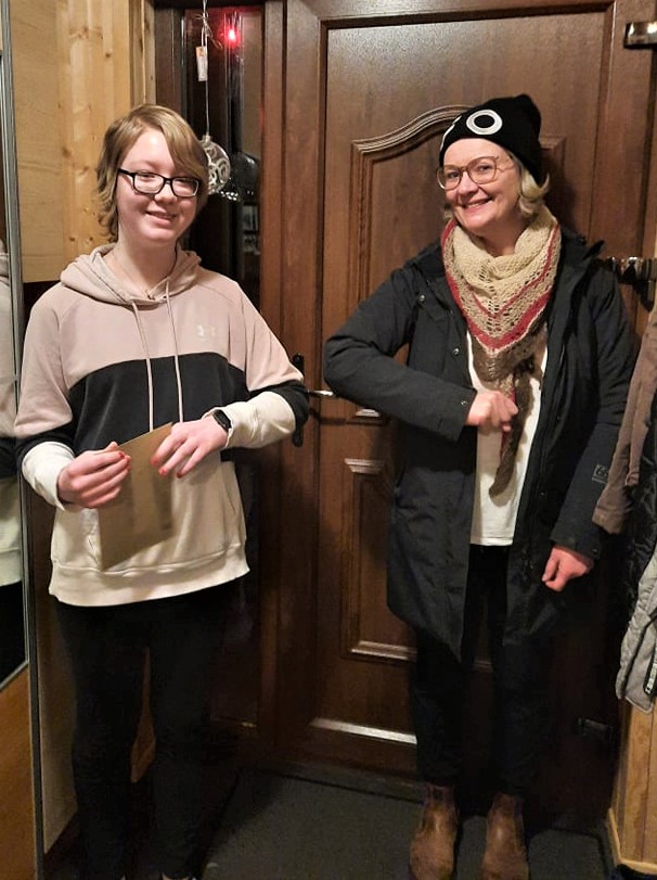 Björg Ágústsdóttir bæjarstjóri heimsótti Heiðrúnu heim til hennar að Skallabúðum seinnipartinn á Þorláksmessu og færði henni viðurkenningu Grundarfjarðarbæjar.