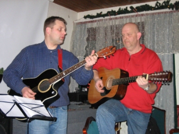 | Jökull Helgason og Jónas P. Bjarnason spiluðu undir þegar jólalögin voru sungin. |
