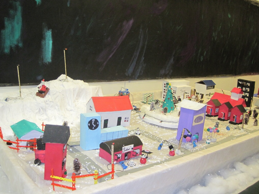 Nemendur í 7. - 10. bekk Grunnskóla Grundarfjarðar unnu sameiginlega að skemmtilegu þemaverkefni síðustu daga fyrir jólafrí þar sem nemendur sköpuðu stærðarinnar jólaþorp. Segja má að nemendur hafi hugsað fyrir hverju smáatriði. Leir var notaður til að búa til persónur og dýr og pappi, málning og alls kyns smáhlutir notaðir til að byggja upp heimili og fyrirtæki og nánast alla þá þjónustu sem bæjarfélög vilja í sinni heimabyggð. Sköpuðu nemendur til að mynda sundlaug með heitum pottum, sérstaka sælgætisverslun, hesthús, dvalarheimili, skóla, bakarí, kirkju, bæjarráðshús, eyju með skautasvelli og fleiri einingar. Þá voru tendruð ljós um allt þorpið, götuljós og jólaljós í húsum. Verkefnið tókst vel til í alla staði og voru nemendur ánægðir með vinnu sína og sköpun. Með þessu verkefni tókst að samþætta námsþætti, sköpunargleði og samvinnu.