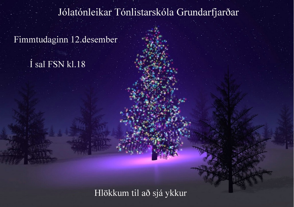 Jólatónleikar tónlistarskóla Grundarfjarðar verða haldnir í sal FSN á fimmtudaginn 12. desember kl. 18:00.