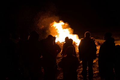 Björgunarsveitin Klakkur bauð upp á glæsilega flugeldasýningu og á heiður skilið fyrir hana. Heitt kakó í boði Framness og foreldrafélags grunnskólans rann ljúflega niður hjá gestum brennunnar og var vel þegið í kuldanum.