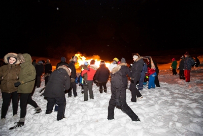 Það var vel mætt til árlegrar þrettándabrennu Grundarfjarðarbæjar í Hrafnkelsstaðabotni í Kolgrafarfirði og þar voru jólin kvödd með glæsibrag. Grundfirðingar láta ekki smá vindhviður á sig fá og mættu kappklæddir og galvaskir til þessarar fínu brennu.
