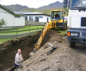 Unnið er við götulagnir í Hrannarstíg og er áætlað að framkvæmdir muni standa yfir næstu tvær til þrjár vikur.