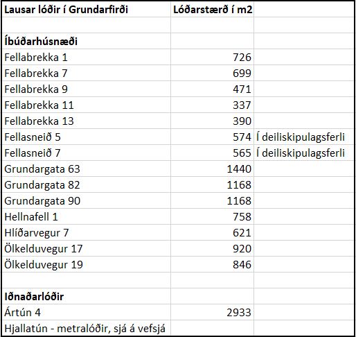 Á meðfylgjandi mynd eru sýndar áhugaverðar lóðir, þ.e.