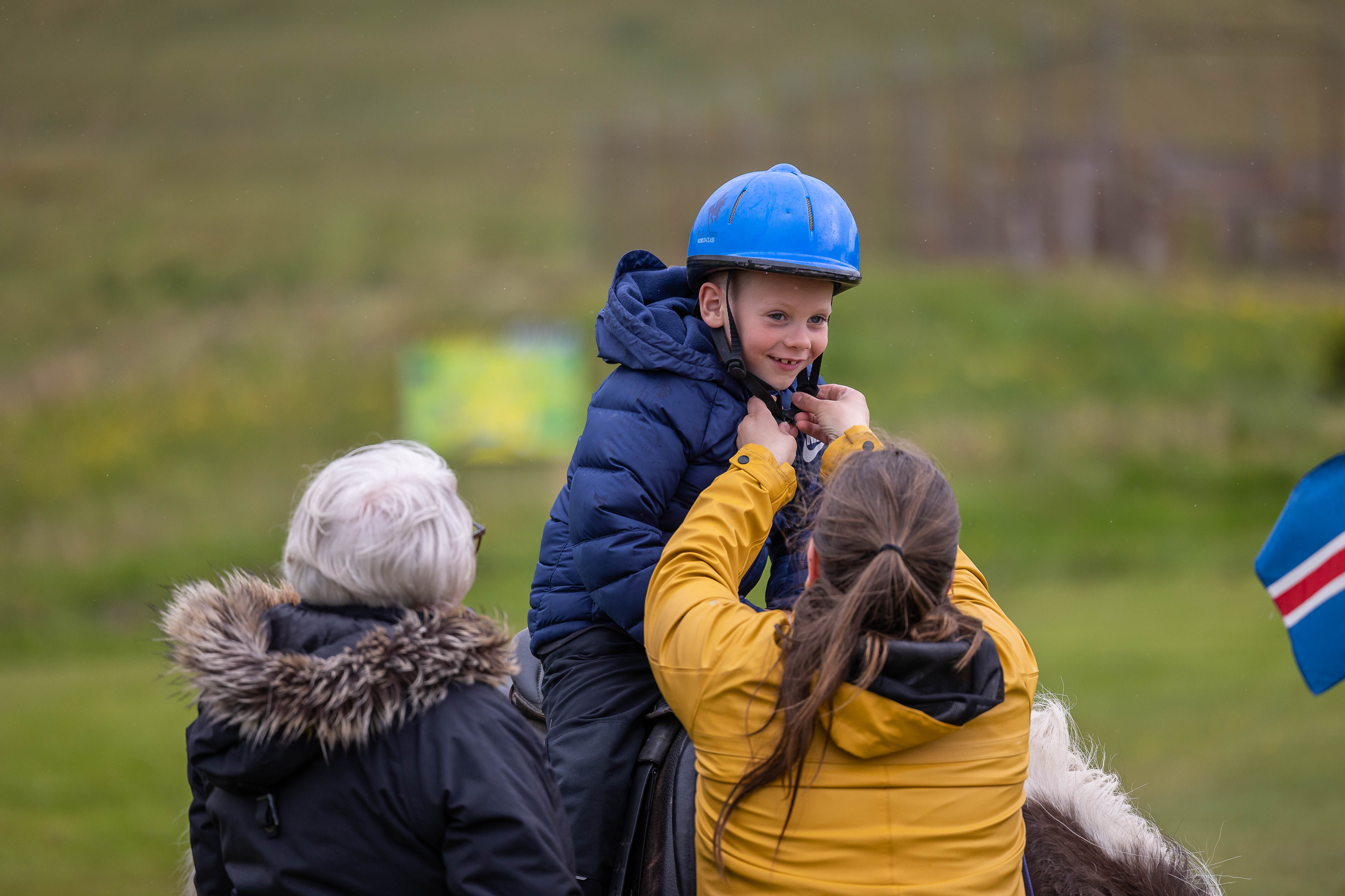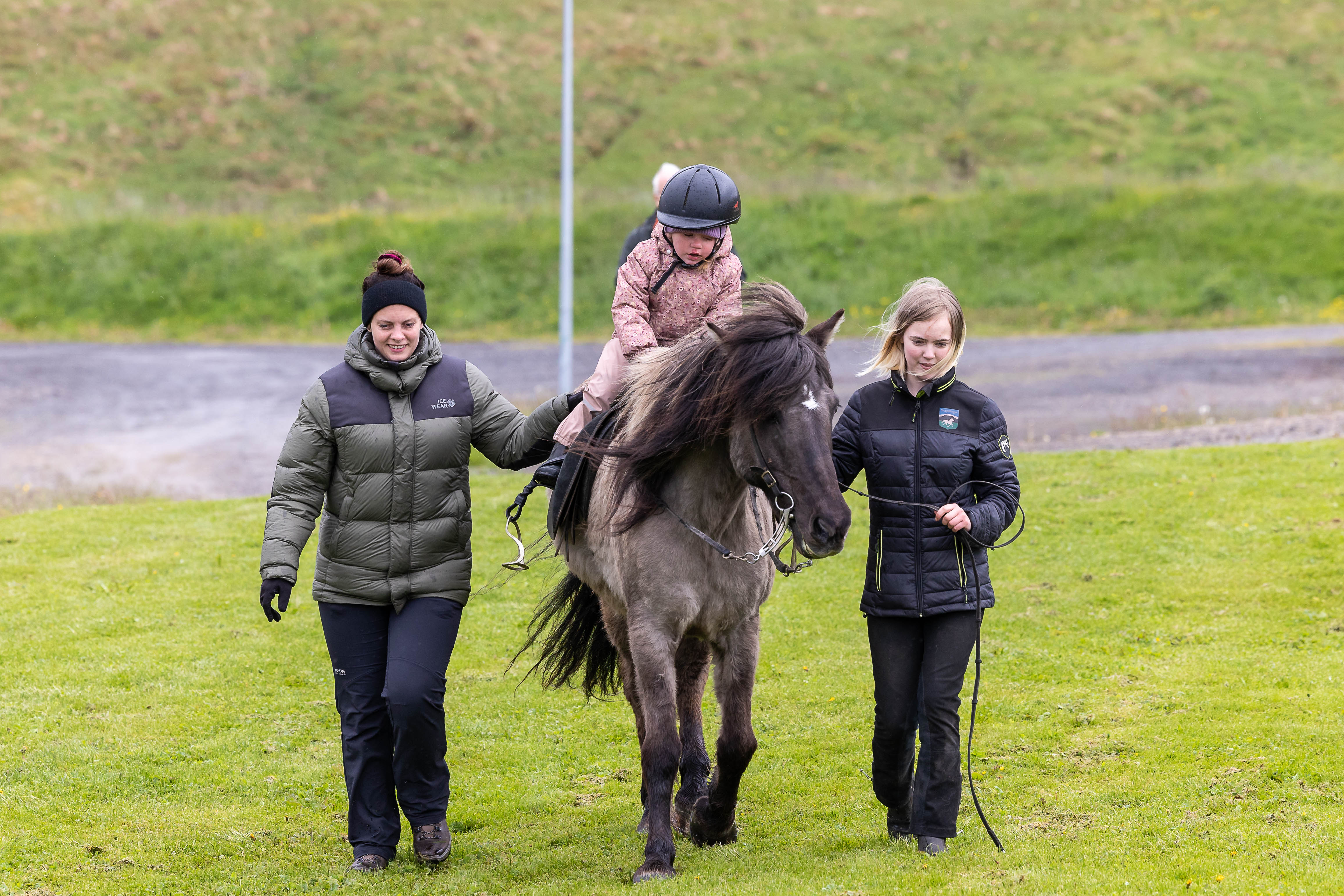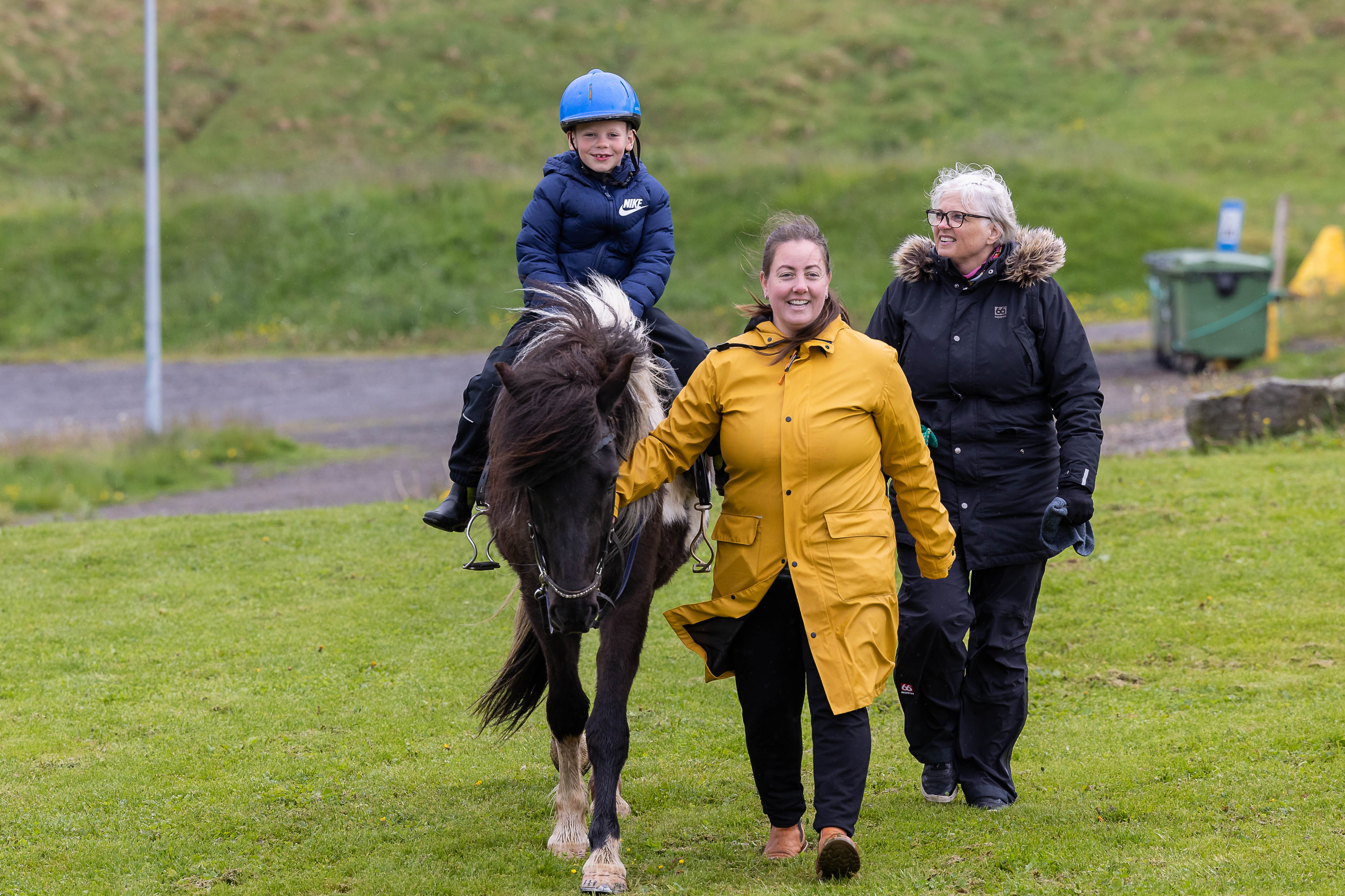 Á 17. júní í ár mættu félagar í Hesteigendafélaginu og teymdu hesta sína undir börnum sem fengu að prófa að fara á hestbak.