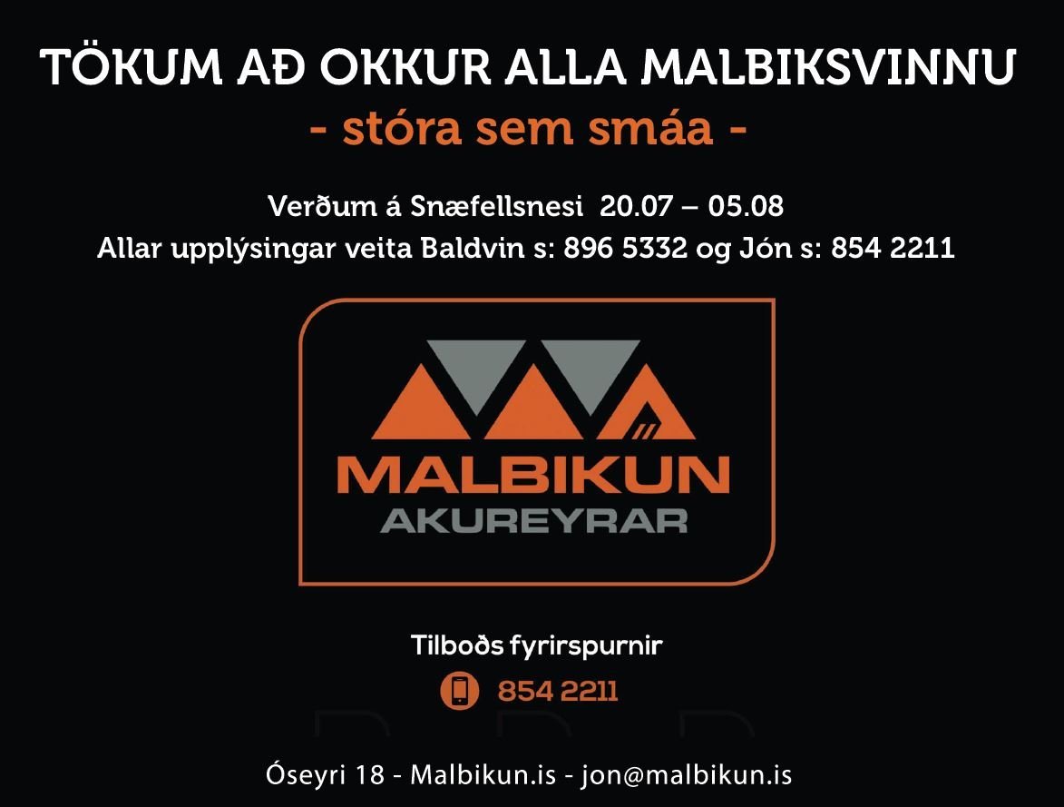 Malbikun Akureyrar setur upp aðstöðu og verður við malbikun á Snæfellsnesi dagana 20. júlí til 5. ágúst í sumar, bæði fyrir sveitarfélögin, fyrirtæki og einstaklinga.